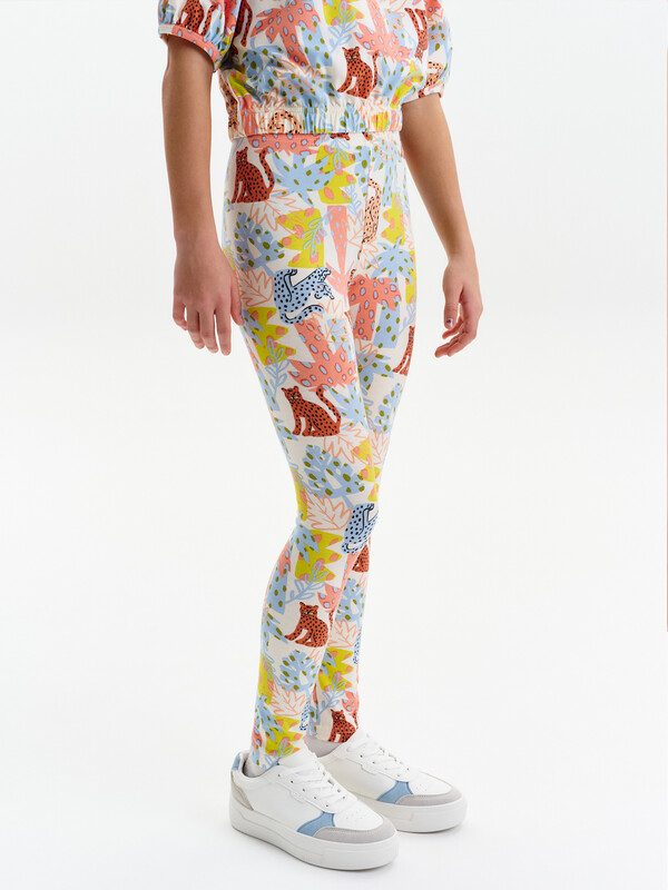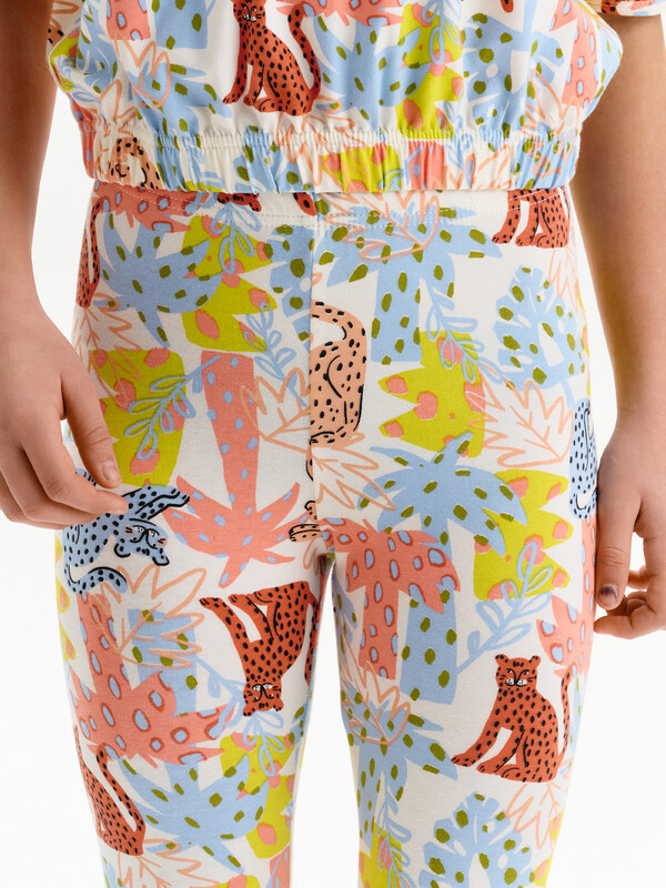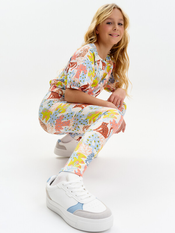 Трикотажные лосины для девочек. Плотные и эластичные.  Широкий мягкий пояс не будет сдавливать живот и врезаться в кожу. Средняя посадка.