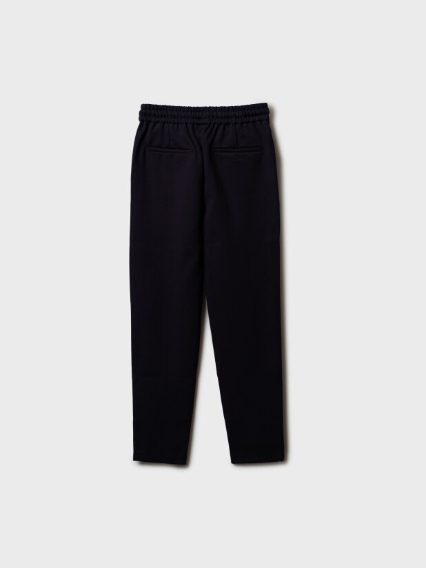 Свободный крой - comfort fit - со слегка зауженными брючинами не стесняет движений, обеспечивая максимальный комфорт на уроках и во время активных перемен. Эластичный пояс на мягкой резинке с регулируемым шнурком гарантирует идеальную посадку по фигуре. Боковые карманы добавляют модели практичности, а декоративные строчки спереди делают образ аккуратным и элегантным.