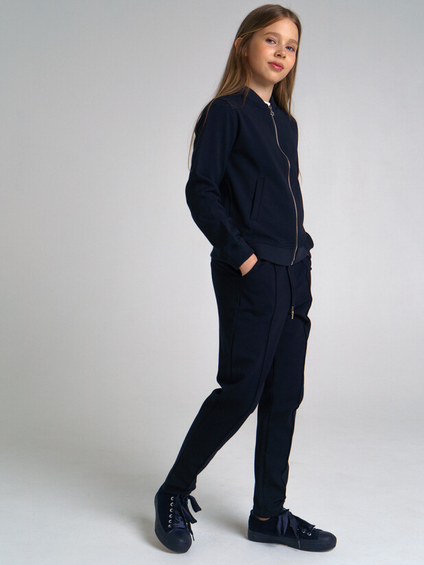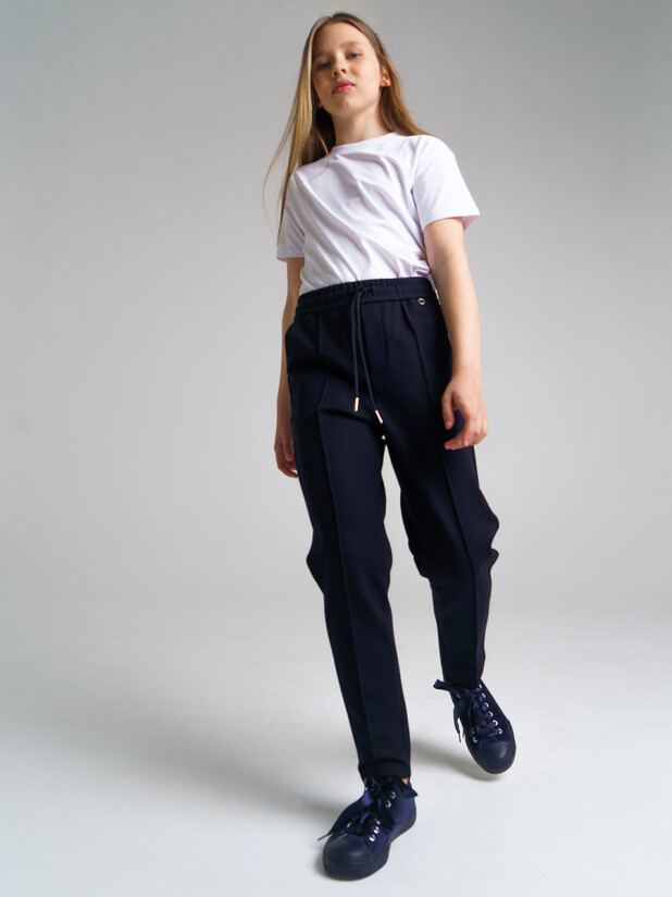 Школьные трикотажные темно-синие брюки для девочки подростка от PlayToday — это стильное сочетание комфорта, практичности и свободы движений. Идеально подойдут для школы, дополнительных занятий и повседневной активности.