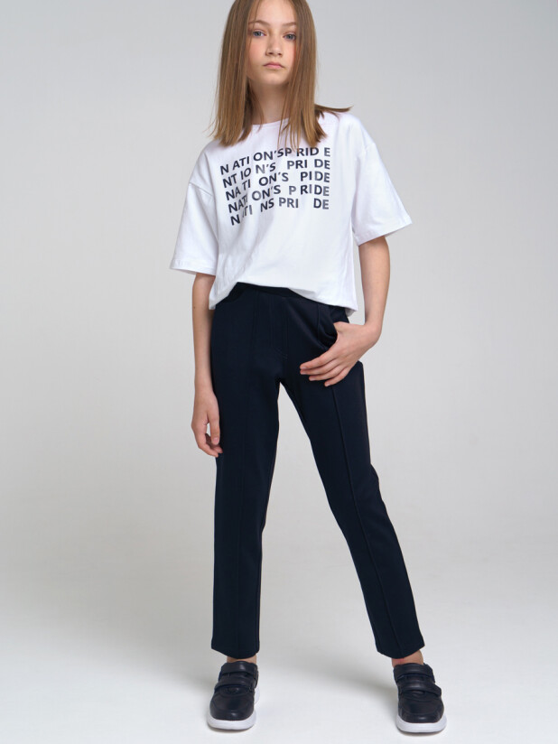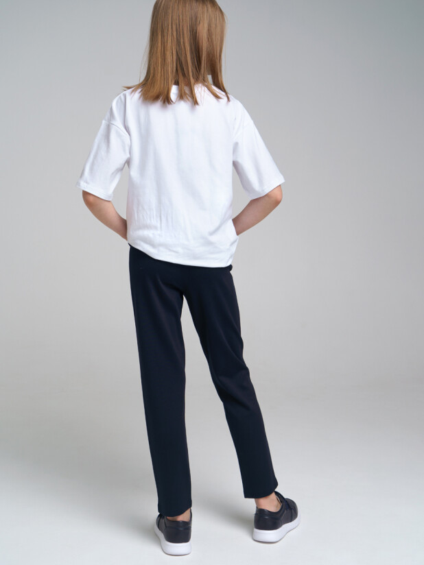 Модные трикотажные синие брюки в школу для девочки от PlayToday — идеальное решение для комфорта, стиля и практичности на каждый день.