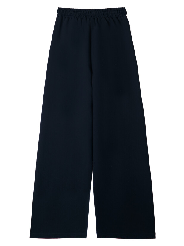 Свободный крой со слегка зауженными брючинами и высокая посадка создают современный и удобный силуэт. Пояс на мягкой резинке со шнурком легко регулируется по фигуре, обеспечивая идеальную посадку. Практичные боковые карманы удобны для хранения необходимых мелочей.