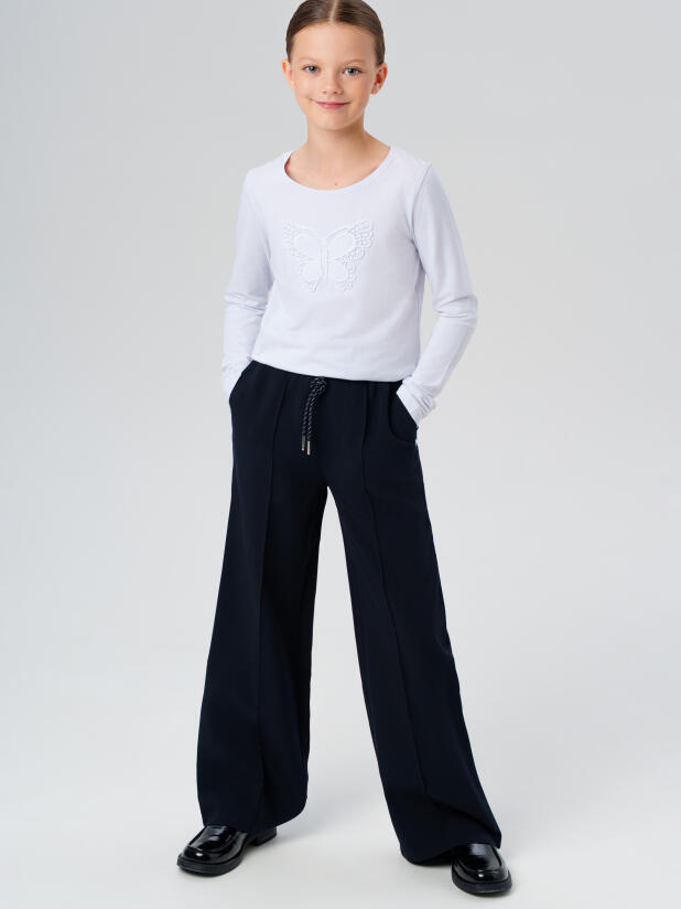 Модные синие брюки для школы для девочки от PlayToday — это комфорт, стиль и лёгкость в уходе каждый день. Практичная база для гардероба школьницы.