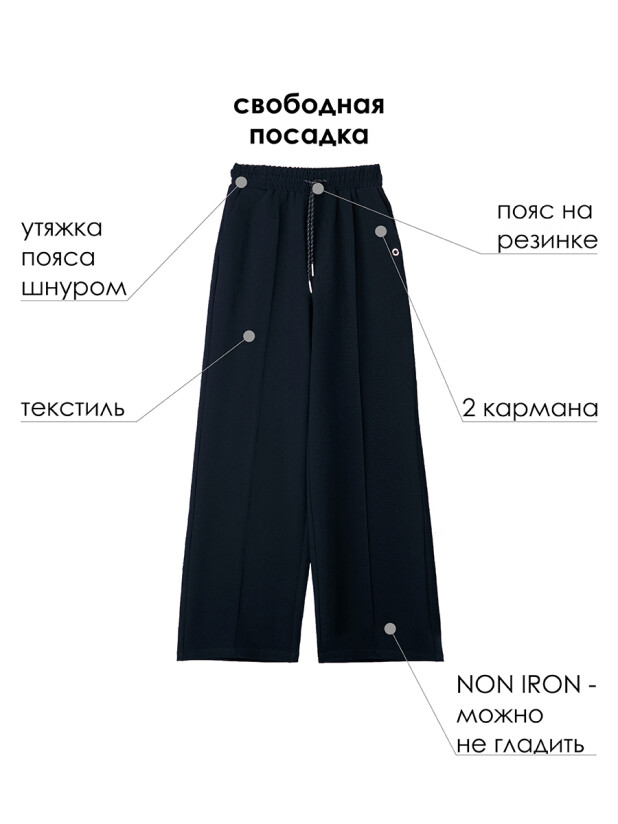 Классические текстильные школьные синие брюки non-iron для девочки подростка от PlayToday — стильный и практичный выбор для школы и активных будней. Свободный крой, удобный пояс и инновационная ткань, которая не требует глажки, делают эти классические подростковые штаны настоящей находкой для школьного гардероба.