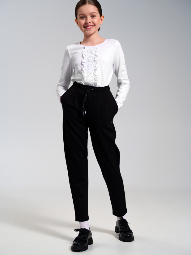 О товаре Свободные трикотажные школьные черные брюки для девочки подростка от PlayToday — комфорт и стиль на каждый школьный день. Универсальная модель с расслабленным силуэтом идеально подойдёт для занятий, прогулок и повседневной активности. Преимущества модели: + трикотаж с высоким содержанием вискозы + эластичный пояс со шнурком + свободный крой + карманы в боковых швах + универсальный черный цвет + лёгкий уход Эти черные подростковые брюки для школы выполнены из мягкого и эластичного трикотажа с высоким содержанием вискозы. Материал хорошо тянется, пропускает воздух и комфортен даже при длительном ношении. Благодаря добавлению полиэстера и эластана ткань сохраняет форму, устойчива к износу и проста в уходе. Свободный крой придаёт образу расслабленность и современность, а эластичный пояс со шнурком обеспечивает надёжную и комфортную посадку. Карманы делают модель ещё более практичной. Совет по стилю: сочетайте эти стильные трикотажные штаны для девочек с лонгсливом, рубашкой, худи или кардиганом от PlayToday. Отличный вариант для школы, прогулок или 1 сентября. Материал неприхотлив в уходе: эти нарядные детские брюки легко стираются, быстро сохнут, не вытягиваются и долго остаются аккуратными. Рекомендуется машинная стирка при температуре до 30°C. Модель представлена в размерах на рост 128–170 см — подойдёт для девочек и подростков от 8 до 16 лет. Модные черные трикотажные брюки для школы для девочки от PlayToday — это мягкость, удобство и универсальный стиль на каждый день. СОСТАВ 67% вискоза, 28% полиэстер, 5% эластан Уход Максимальная температура стирки 30°С. Мягкий режим. Не отбеливать. Утюжить при температуре не более 110°С. Чистка запрещена. Не применять сушку в барабане. Стирать с вещами такой же окраски. Стирать вывернутым наизнанку. Не утюжить отделку. Предварительная стирка обязательна. Утюжить с изнаночной стороны. Бренд PlayToday АРТИКУЛ 22427124 Цвет Черный Возрастная категория Школьники, Подростки Пол Женский Сезон Демисезон Год коллекции 2025 Страна бренда Германия Страна производства Китай Возраст 8 лет, 9 лет, 10 лет, 11 лет, 12 лет, 13 лет, 14 лет, 15 лет, 16 лет Маркировка Товары легкой промышленности и одежда Миниколлекция School