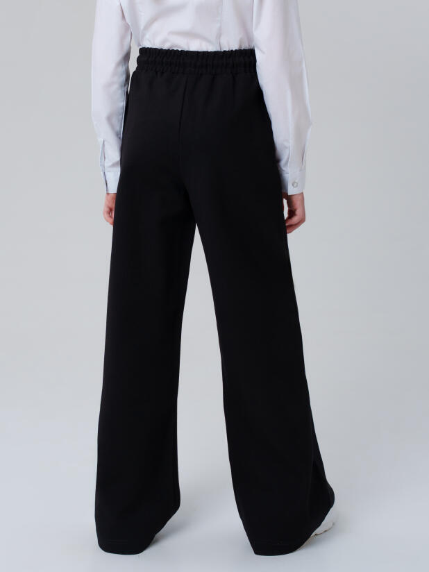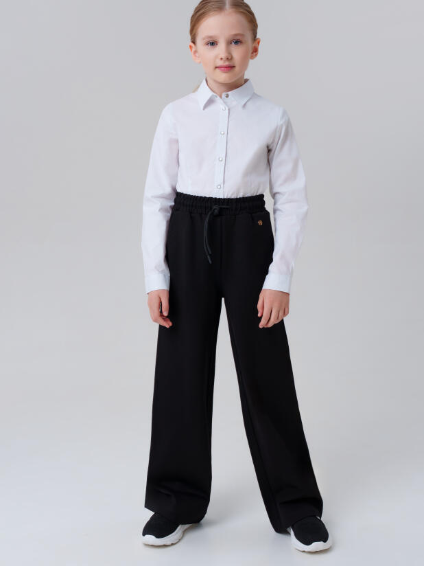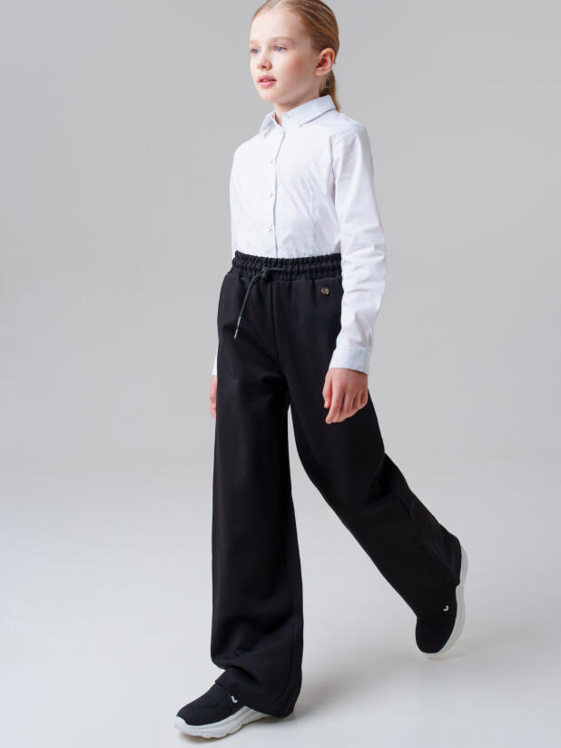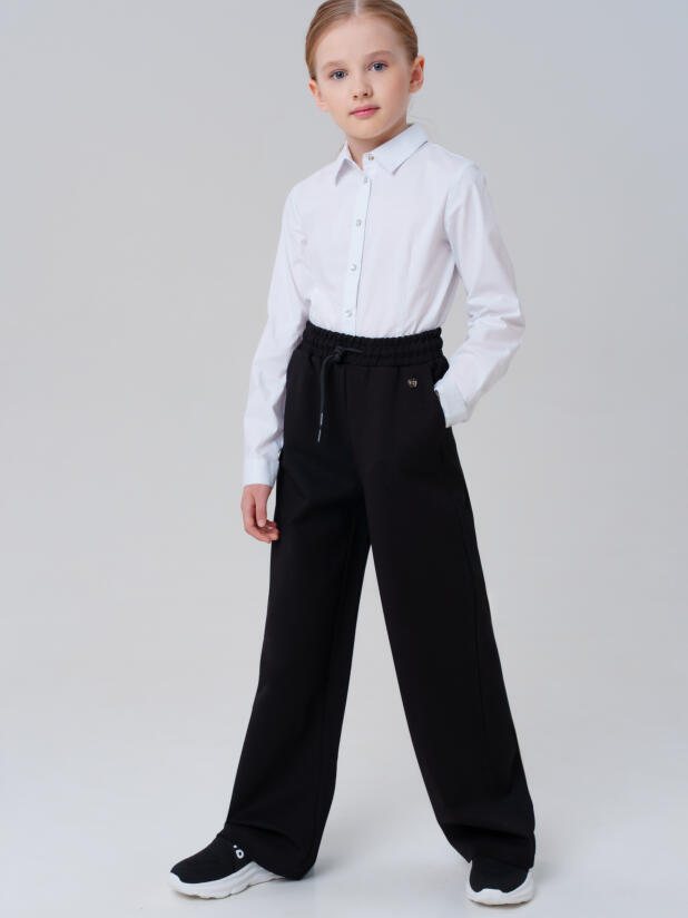 Свободный крой и продуманная посадка обеспечивают максимальный комфорт на занятиях, переменах и внеурочных мероприятиях. Универсальный чёрный цвет делает эти школьные штаны для девочек отличной основой для любого образа — как делового, так и повседневного.