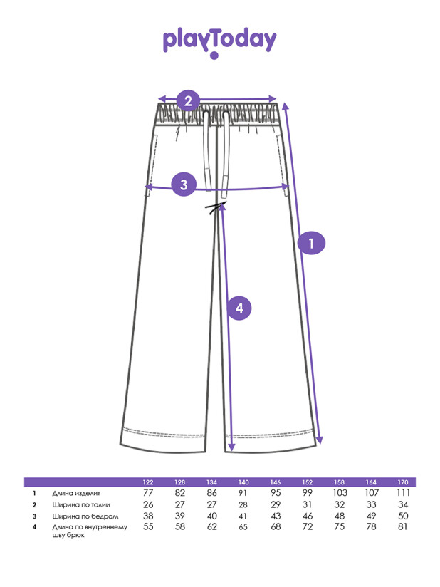 Совет по стилю: сочетайте эти чёрные брюки палаццо для подростков с базовой рубашкой, трикотажным джемпером или пиджаком от PlayToday. Для прохладных дней дополните образ жилетом или стильным блейзером.