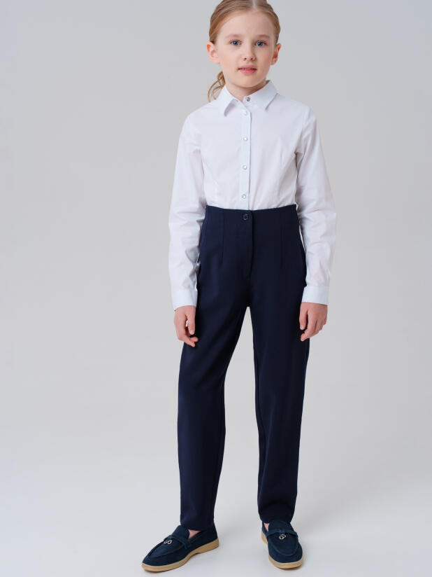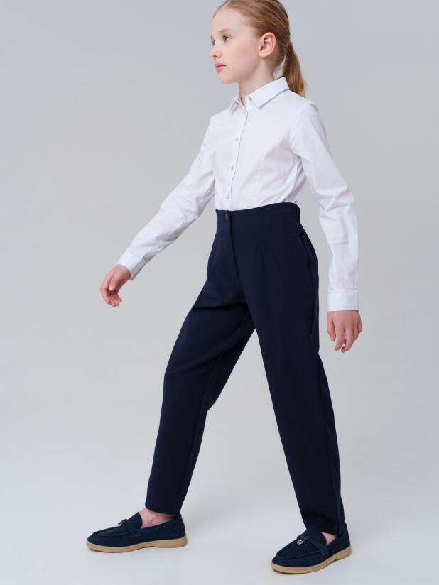 Такие синие подростковые брюки для девочек не требуют особого ухода – достаточно стирки при температуре до 30°C и брюки останутся такими же аккуратными даже после множества стирок.