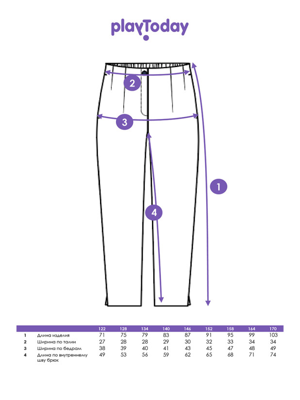 Совет по стилю: сочетайте эти универсальные тёмно-синие брюки для подростков с классическими рубашками, жилетами, блузками или мягкими джемперами от PlayToday. Для прогулок к этим школьным детским штанам можно добавить яркий свитшот или кардиган — получится практичный и стильный образ для любого дня.
