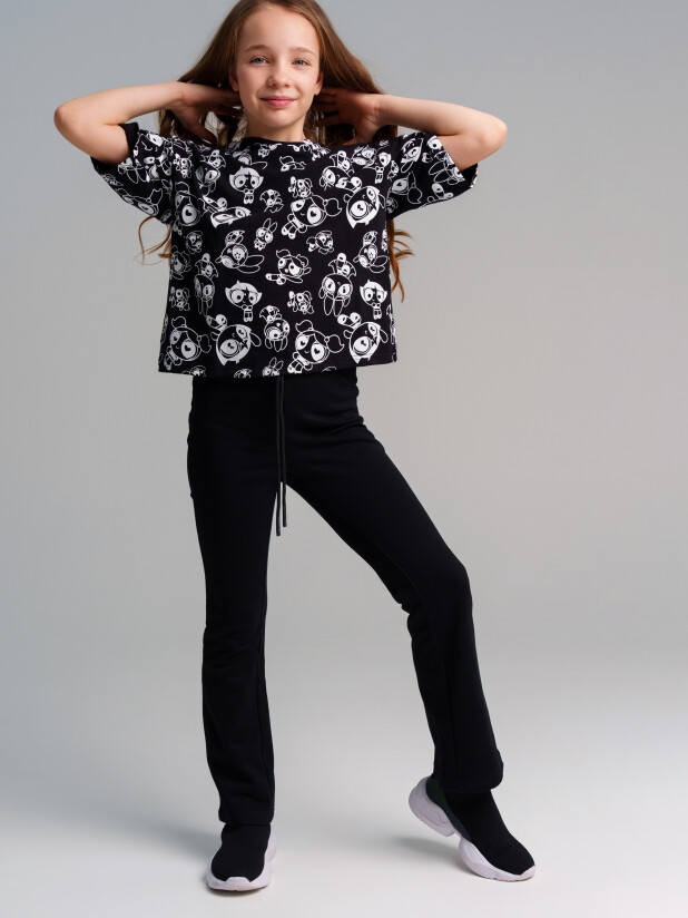 Брюки клеш из футера. Эластичный пояс со шнурком.