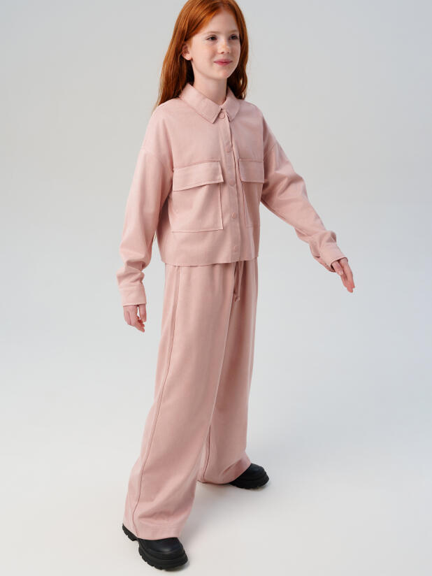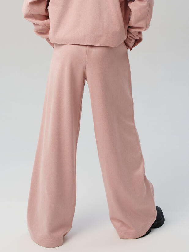 Стильные трикотажные брюки палаццо на резинке для девочки подростка из искусственной замши от бренда PlayToday.