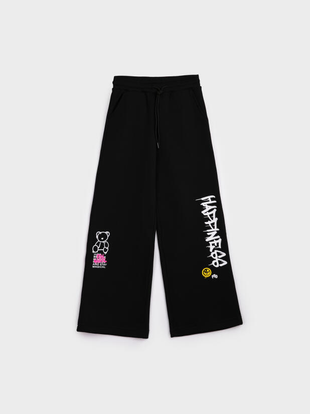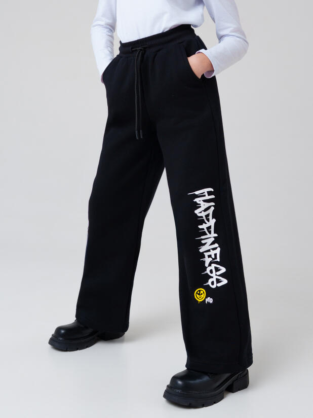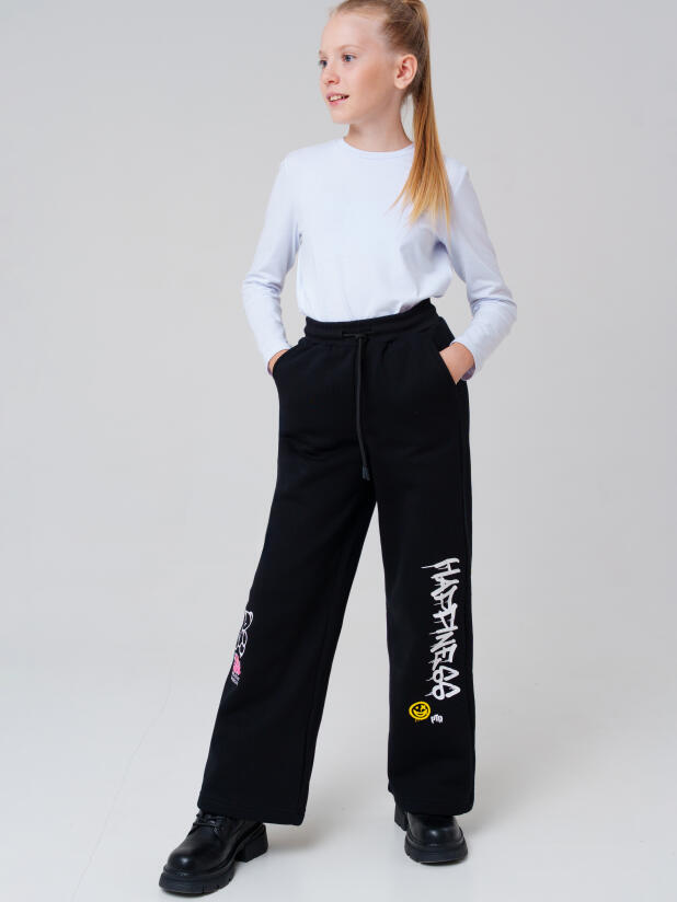 Брюки трубы из футера с начесом на резинке со шнурком для девочки подростка. Функциональные боковые карманы.