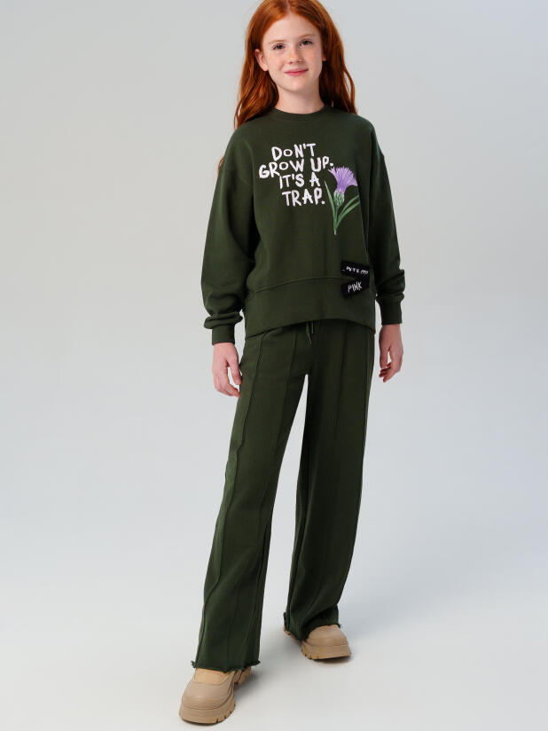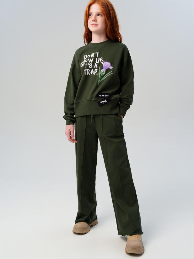 О товаре Трикотажные брюки палаццо на резинке для девочки подростка от PlayToday. Преимущества модели: + Трикотажные штаны для девочек подростков — базовый элемент гардероба + Брюки на резинке со шнурком — комфортная посадка, легко регулируются + 2 боковых кармана — практично и удобно + Брюки для школы, прогулок, спорта и отдыха + Мягкий и приятный к телу материал — комфорт на целый день + Свободный крой — не стесняет движений, отлично подходит для активных девочек + Размеры от 146 до 176 см — для подростков разного роста + Лаконичный дизайн — легко комбинируется с худи, футболками, джемперами Универсальные брюки на каждый день для подростков. Изготовлены из мягкого дышащего трикотажа, отлично сидят по фигуре, не сковывают движения и легко сочетаются с верхом. Когда и как носить: Подходят для повседневной носки — в школу, на прогулку, тренировку, в поездку или на отдых. Универсальная модель для демисезона и прохладного лета. Советы по стилю: Носите с толстовками, лонгсливами, футболками, бомберами или джинсовками. Добавьте кроссовки и рюкзак — получится удобный и стильный городской образ в стиле стритвир или спорт-шик. Отличный выбор для модной девочки-подростка! Подходит для девочек от 11 до 17 лет. СОСТАВ 100% хлопок Уход Максимальная температура стирки 30°С; мягкий режим., Не отбеливать., Утюжить при температуре не более 110°С., Чистка запрещена., Не применять сушку в барабане., Стирать с вещами такой же окраски., Стирать вывернутым наизнанку., Не утюжить отделку., Предварительная стирка обязательна., Утюжить с изнаночной стороны. Бренд PlayToday АРТИКУЛ 32521180 Цвет Хаки Возрастная категория Школьники, Подростки Пол Женский Сезон Осень, Зима Год коллекции 2025 Страна бренда Германия Страна производства Китай Возраст 8 лет, 9 лет, 10 лет, 11 лет, 12 лет, 13 лет, 14 лет, 15 лет, 16 лет, 17 лет Маркировка Товары легкой промышленности и одежда Миниколлекция STAR
