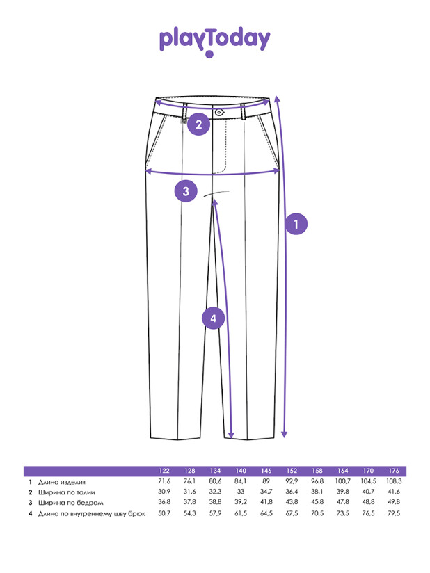 Брюки неприхотливы в уходе: сохраняют форму и внешний вид даже после многочисленных стирок при температуре до 30°C.