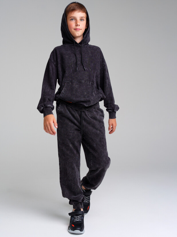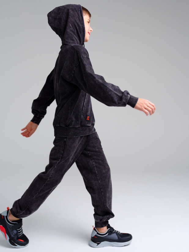 Брюки из футера. Материал имеет вид классической джинсы. Высокое содержание хлопка. Посадка comfort fit – свободный крой брючин. Карманы в боковых швах. Эластичный пояс со шнурком. Эластичные манжеты по низу брючин. Благодаря оптимальной посадке брюки не сползают при движении.