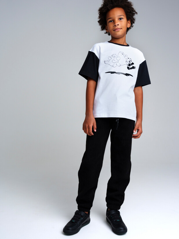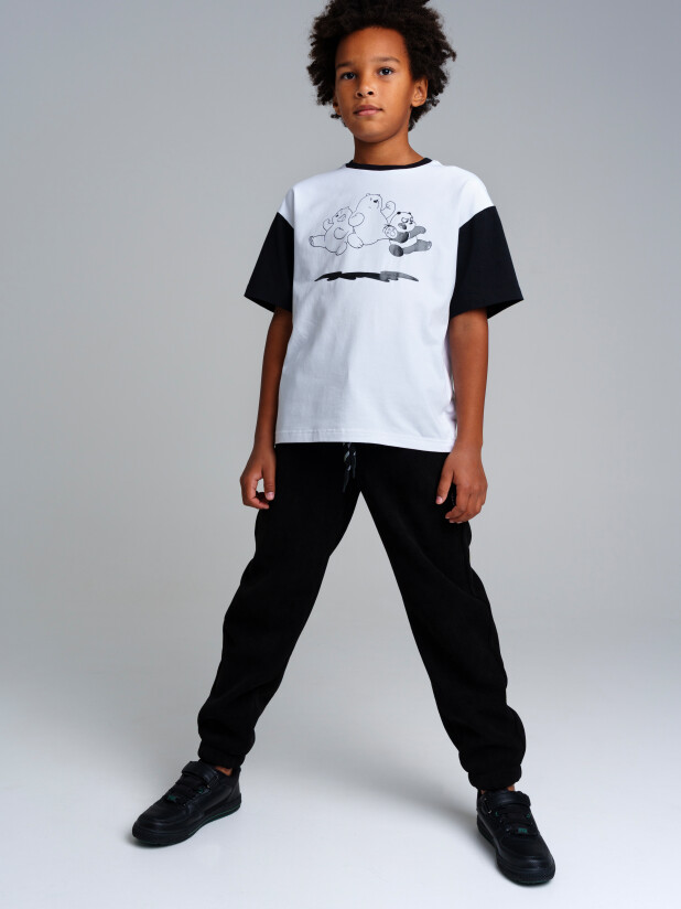 Брюки из футера, утепленные флисом..Посадка comfort fit – свободный крой брючин. Эластичный пояс со шнурком. Эластичные манжеты. Карманы по бокам.