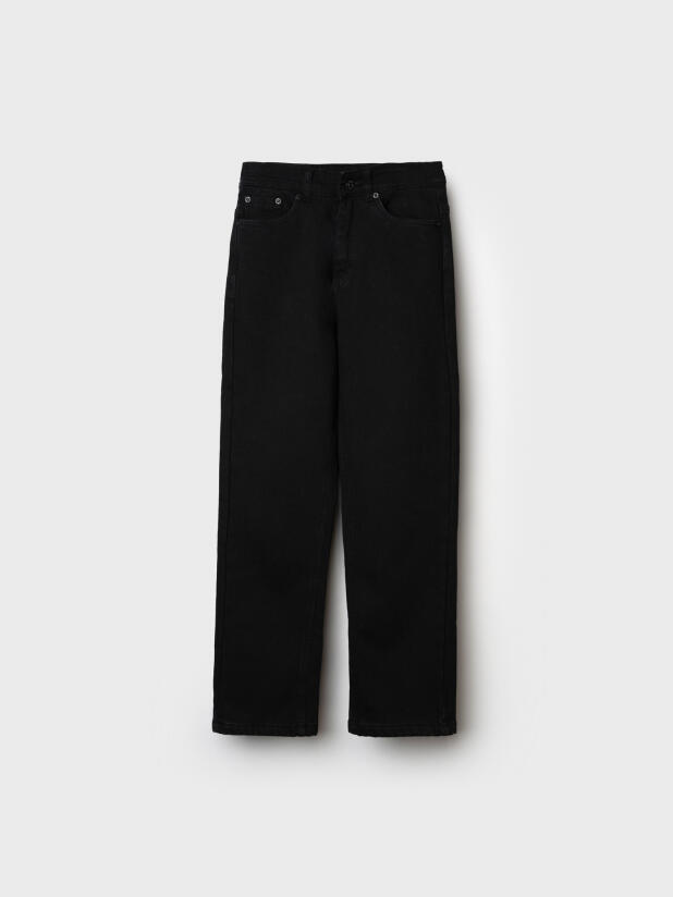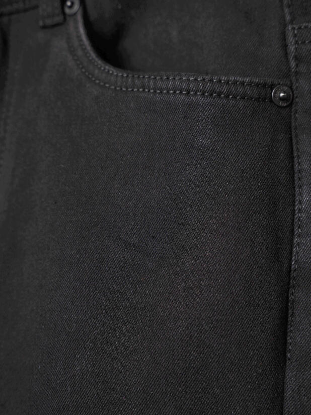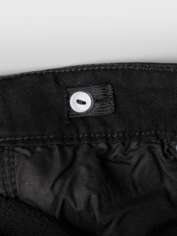 Джинсы выполнены из черного денима средней плотности с мягкой флисовой подкладкой. Модель отлично держит тепло, остаётся комфортной и приятной к телу даже в прохладную погоду. Прочный материал устойчив к износу и долго сохраняет опрятный внешний вид.