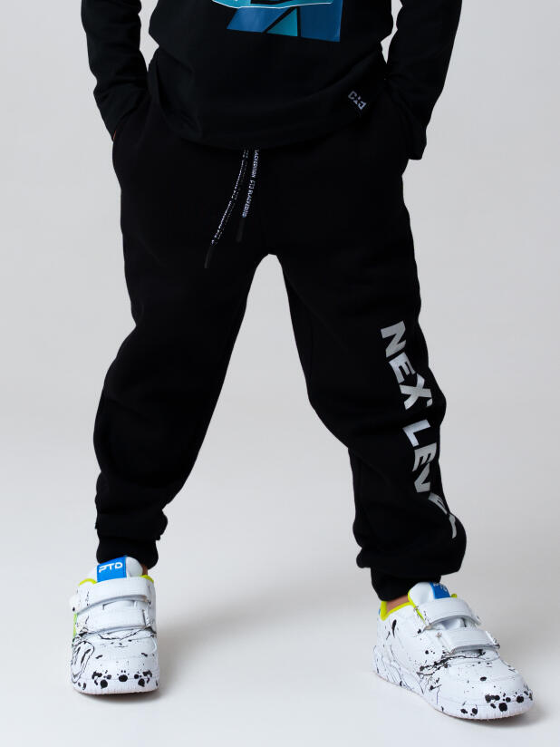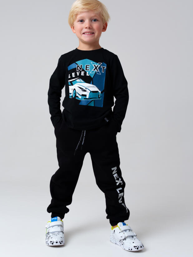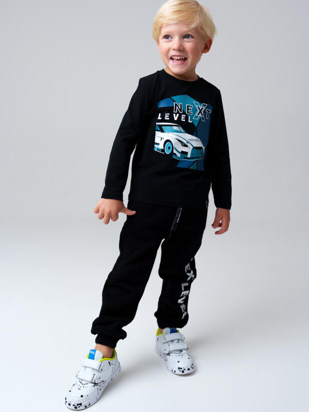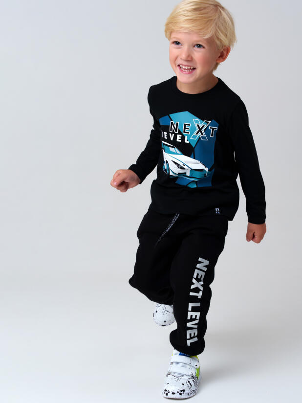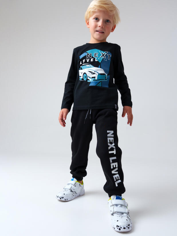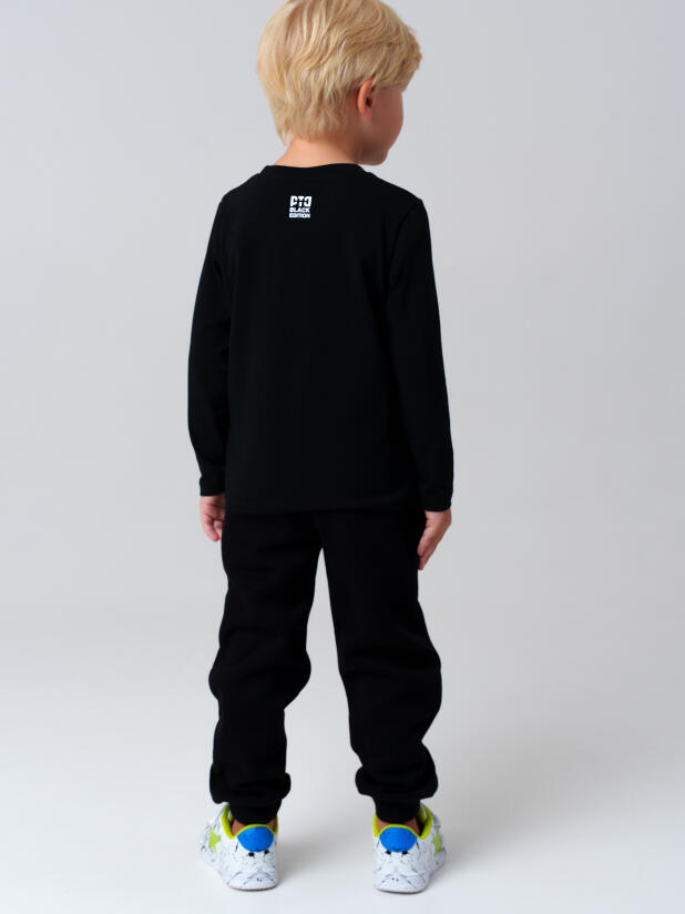 Модные чёрные брюки для мальчика из футера без начёса от PlayToday — практичная и удобная одежда для школы, детского сада, спорта и прогулок.