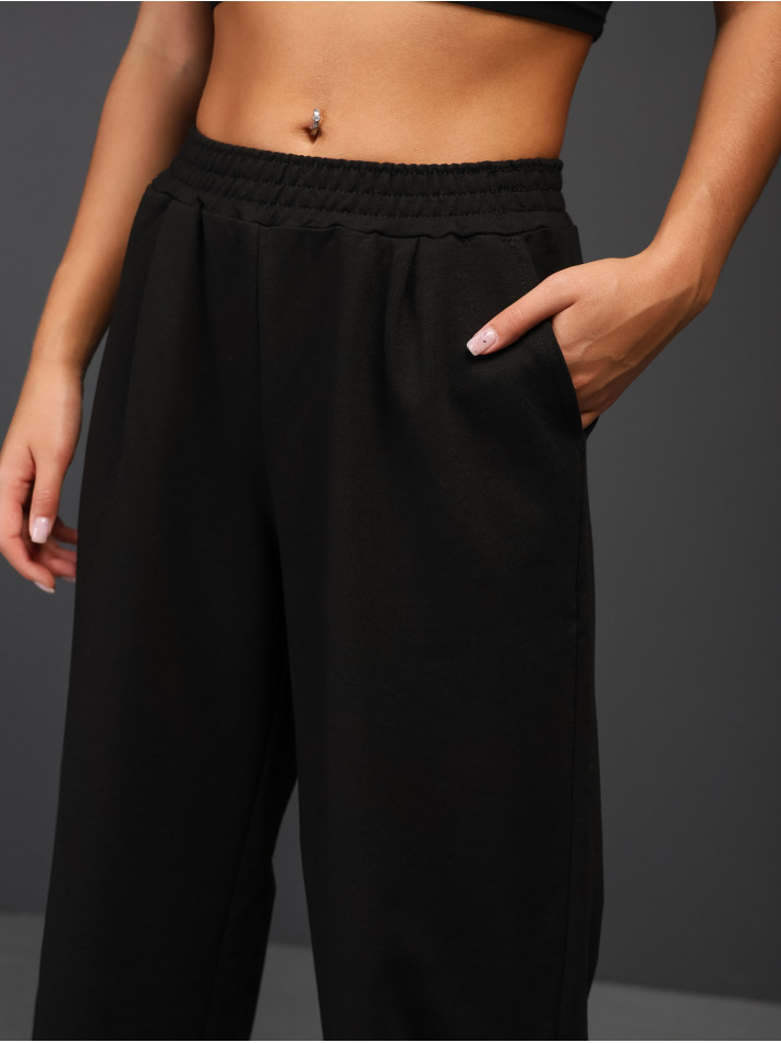 Стильные и удобные трикотажные брюки палаццо на резинке создают неповторимый образ, не говоря о комфортности их ношения. Расклешенные от бедра и завышенная линия талии - визуально стройнят. Штаны изготовлены из качественного футера 2х нитка с добавлением искусственных волокон - для предотвращения деформации ткани, стирайте в режиме бережной или ручной стирки при температуре не выше 30 градусов и брючки не изменятся и не дадут усадку. Универсальный крой хлопковых брюк сочетает в себе разные стили: вы можете носить их с кедами, как спортивные штаны или надеть на работу, в школу и университет, институт - как офисные повседневные. Средняя посадка по талии и не тугая резинка хороший вариант для беременных девушек, будущих и кормящих мам. Трендовые брюки можно носить и дома, как домашние широкие штаны шаровары. Такие брючки универсальные и подходят под разные типы фигур.
