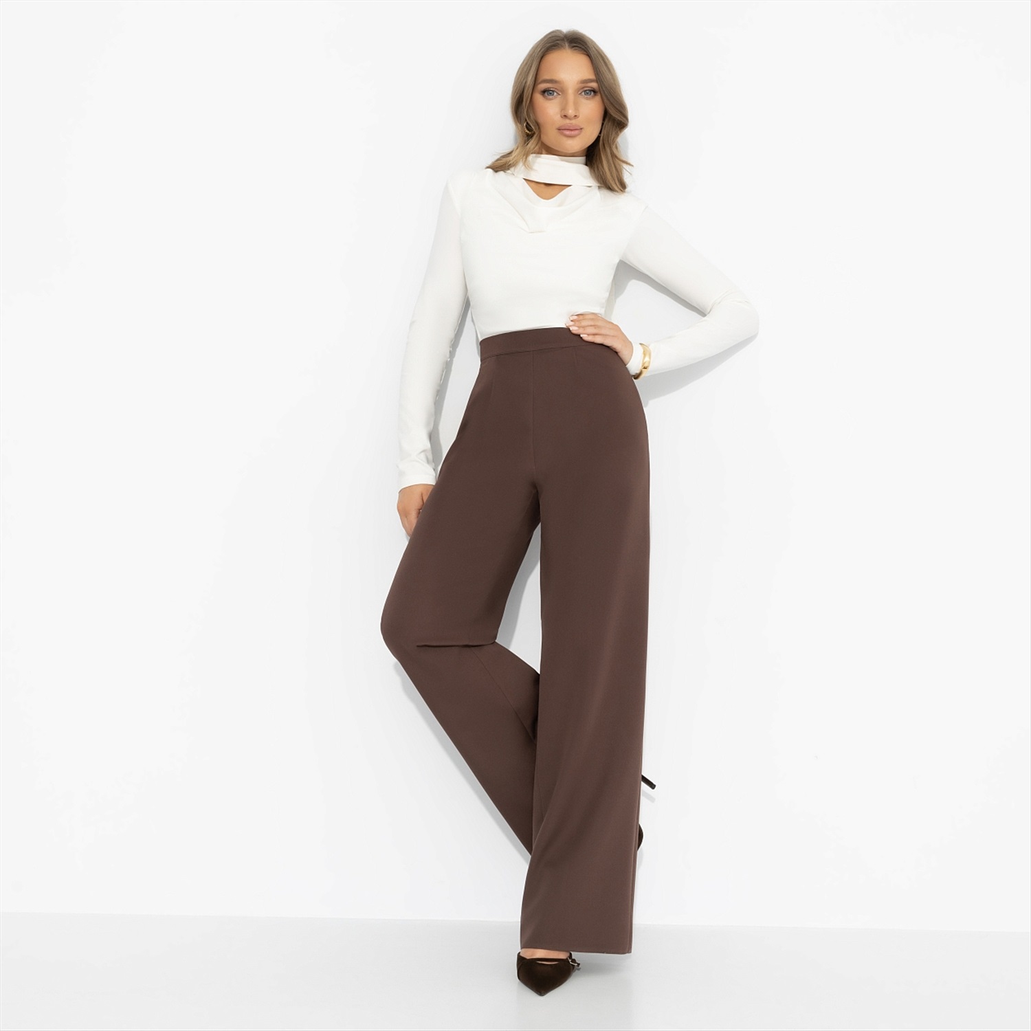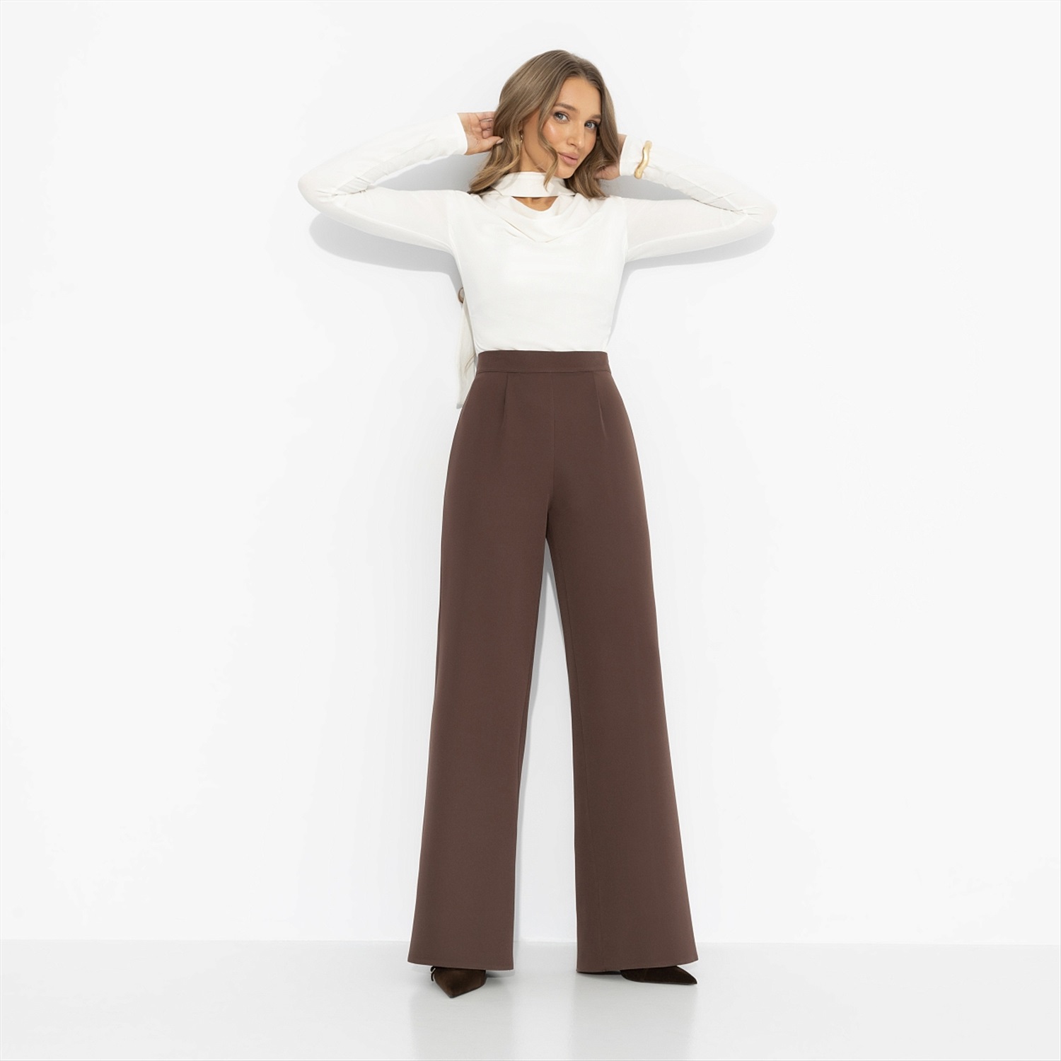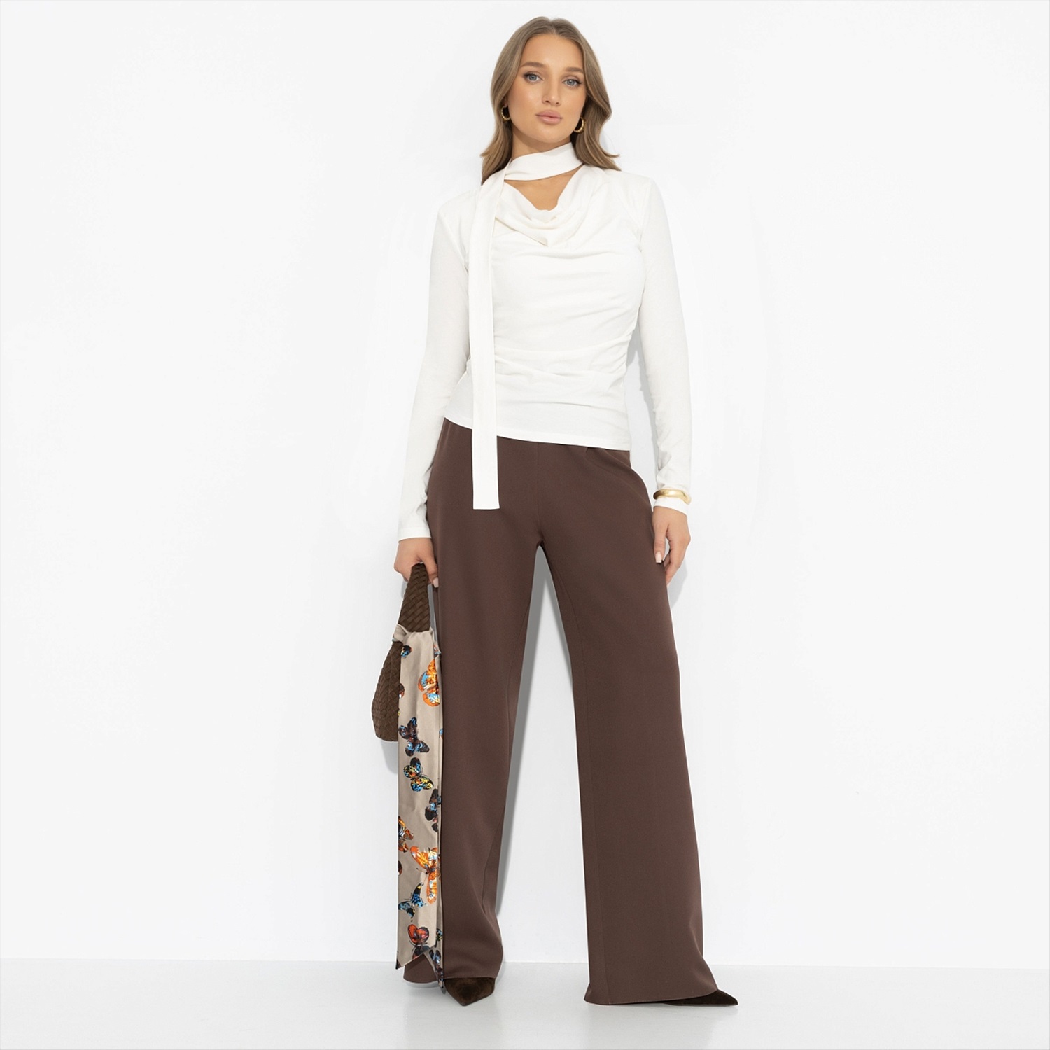 Нам было сегодня лет, когда мы узнали, что коричневый может быть универсальнее чёрного. Стилист ЧАРУТТИ рассказали нам, что шоколадный оттенок работает мягче, теплее и неожиданно подходит ко всему – от молочного до ярких акцентов. Брюки «Модный экстаз» вытягивают силуэт, красиво садятся по талии и комфортно двигаются вместе с тобой. Костюмная ткань «барби» держит форму и характер. Вывод простой: чёрный всё ещё классика, но шоколад – это уже вкус. Брюки без карманов, застёжка сбоку на скрытую молнию.