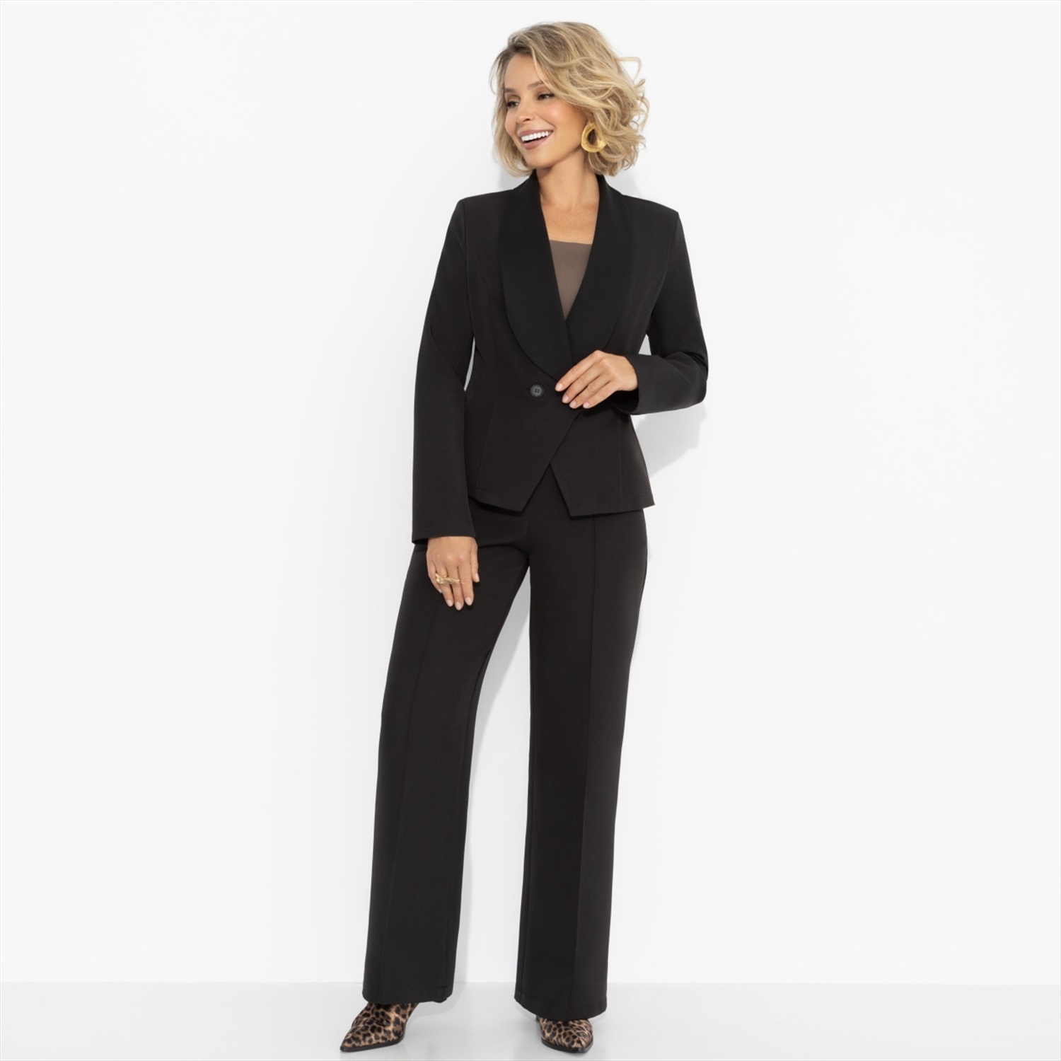 Если бы у Сабрины Карпентер был деловой ужин в мегаполисе – она выбрала бы такой комплект! Стиль и харизма в каждом жесте, соблазнительная простота и уверенность в себе. Прямые брюки с высокой посадкой, идеальный силуэт. Мягкая, но плотная ткань, глубокий чёрный цвет, есть карманы. Брюки универсальны – для работы, коктейлей и вечеров, когда хочется выйти на сцену (или, как минимум, устроить ее).