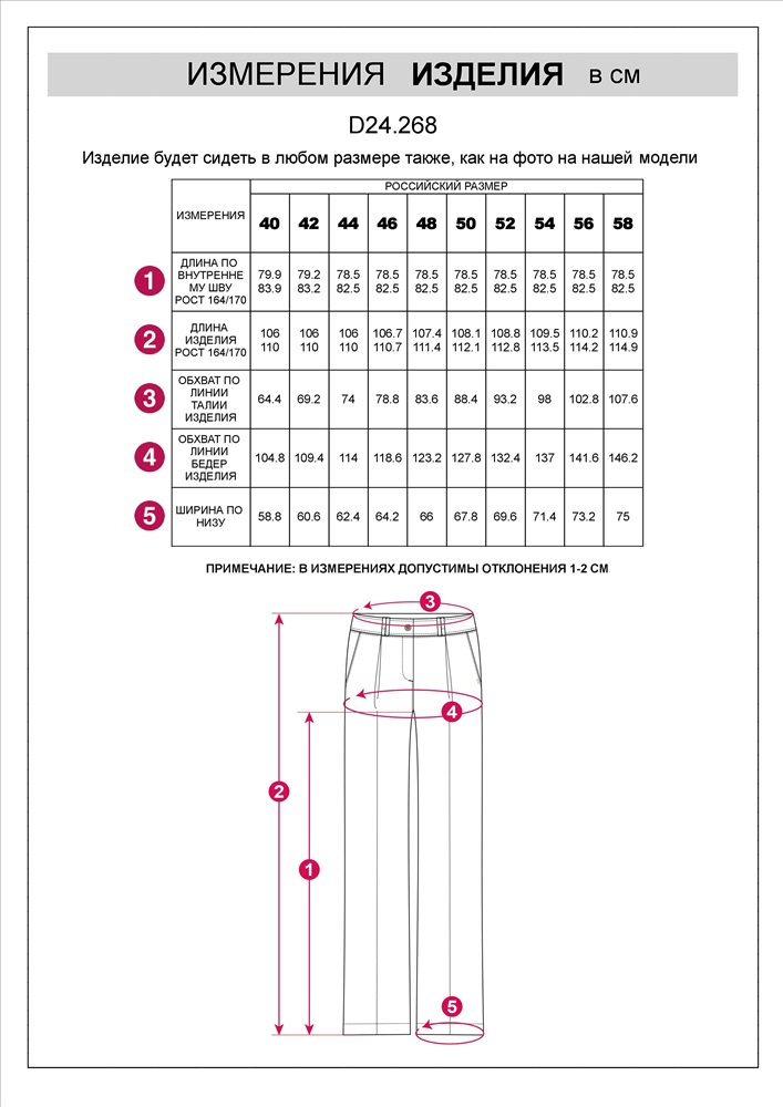 Состав: 97%Хлопок 3%ПУ Брюки выполнены из хлопкового твила. Изделие дополнено двумя вариантами шлёвок, что позволяет использовать ремни разной ширины. Модель имеет два боковых и один задний карман. Защипы у пояса и стрелки вдоль брючины визуально вытягивают силуэт и подчеркивают талию. Благодаря наличию эластана в составе изделие сохранит свой безупречный внешний вид в течение долгого времени. Обладает высокой воздухопроницаемостью, в брюках будет комфортно даже в жаркое время года.