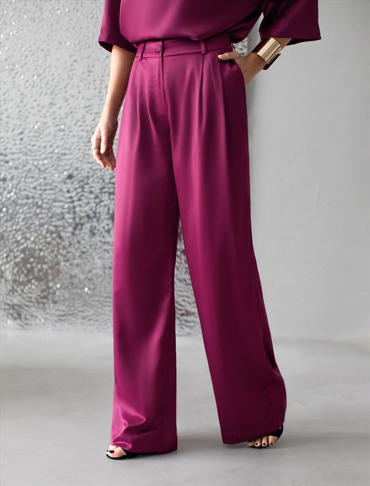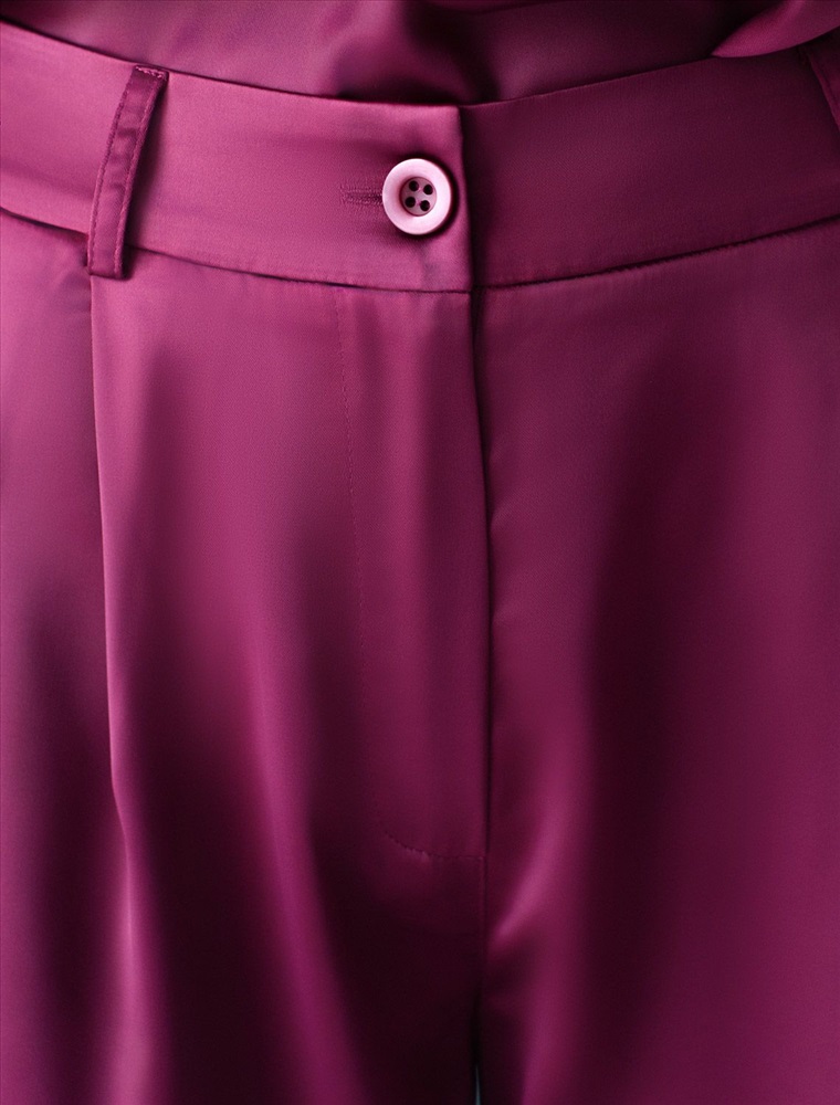 Брюки палаццо цвета бургунди из струящегося сатина, который придает образу эффектный и стильный вид. Мягкий сатин приятен к телу, в них комфортно на протяжении долгой носки. Брюки длиной в пол визуально вытягивают силуэт и подходят как для высоких, так и для женщин низкого роста. Модель идеально садится на большие размеры, не сковывая движений. Благородный материал обеспечивает не только привлекательный внешний вид, но и ощущение легкости в носке. Высокая посадка выгодно подчеркивает фигуру, добавляя изящества и современного шарма, они струятся при каждом движении.