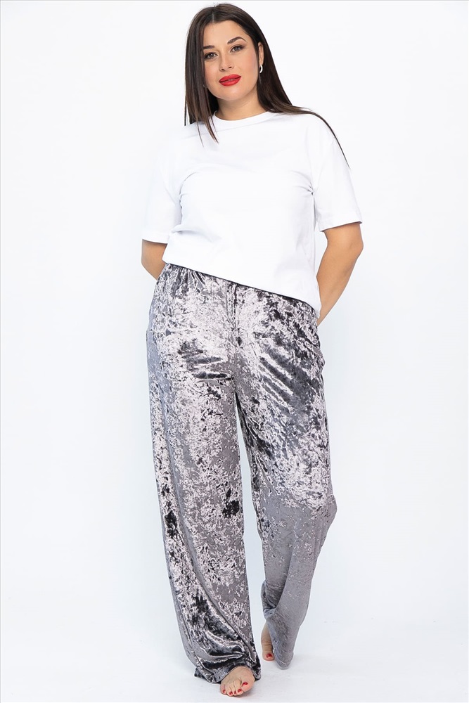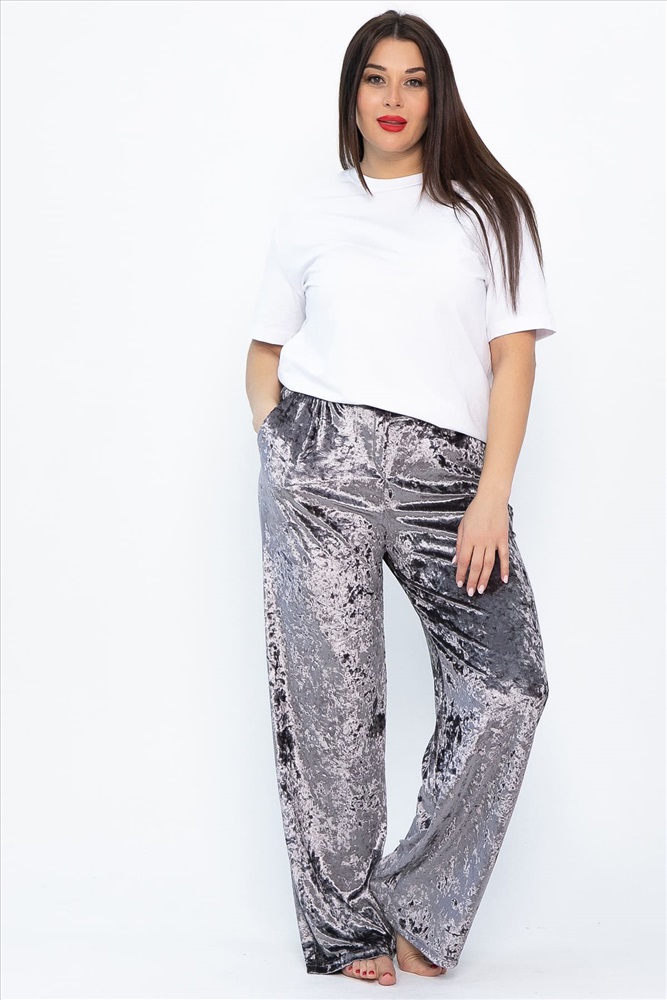 Стильные и комфортные брюки из роскошного мраморного бархата в серо-бежевом цвете сделают ваш образ ярким и запоминающимся. Они прекрасно подойдут как для повседневных аутфитов, так и для торжественных мероприятий или уютных домашних вечеров. Материал, из которого они изготовлены, невероятно приятен на ощупь. Карманы добавляют практичности и удобства. По талии резинка. Создавайте уникальный и современный образ с этими прекрасными штанами, идеально подходящими для любого случая!
