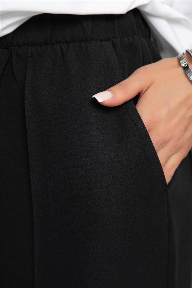 Прямые чёрные брюки — это универсальная базовая вещь, которая станет отличным дополнением к любому образу! Их элегантный силуэт, застроченные стрелки и разрезы по боковым швам добавляют им оригинальности и современности. Эти брюки подойдут как для деловых встреч, так и для повседневных выходов. В них вы будете выглядеть элегантно и чувствовать себя комфортно в любой ситуации.