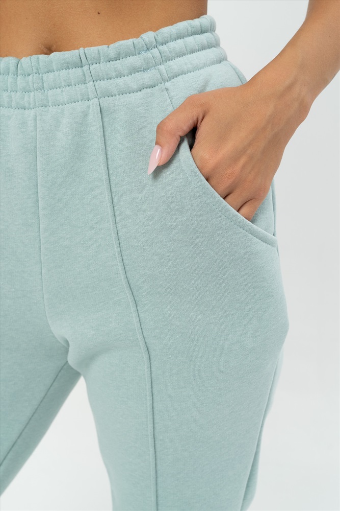 Утепленные брюки прилегающего силуэта чуть зауженные к низу выполнены из хлопкового трикотажа с начёсом. Брюки с высокой посадкой, с карманами и мягкой резинкой по талии. Отстрочка по центру на передней половинке брюк придают особый шик. Выглядит это очень эффектно и стильно. Модель универсальна и сочетается, как с толстовками, свитшотами, так и с футболками.Обращаем внимание, что цвет изделия может немного отличаться от оттенка, представленного на фотографиях. размер одежды 44 Длина брюк по боковому шву 42 размер 104см. 44 размер 104см. 46 размер 104см. 48 размер 105см. 50 размер 105см. 52 размер 105,3см. 54 размер 106см.