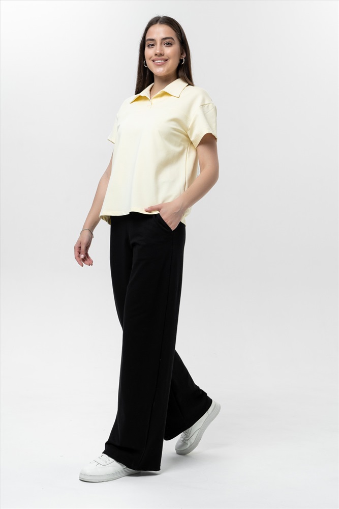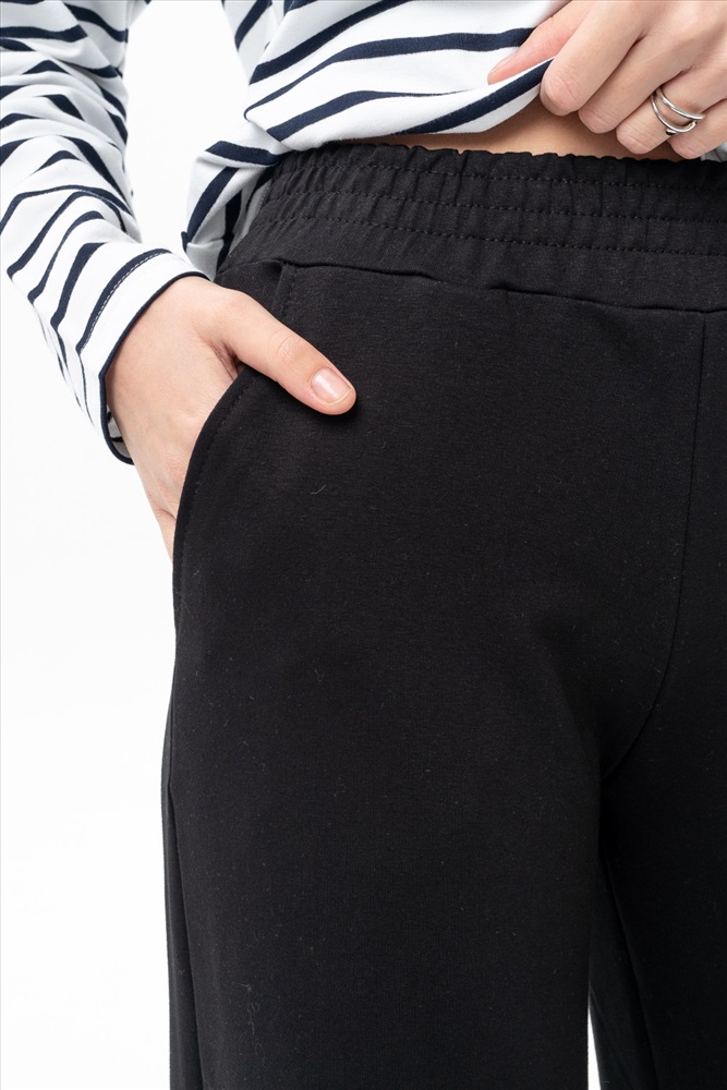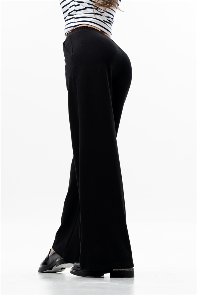 Стильные и модные брюки палаццо отличаются легкостью и комфортным прилеганием к телу. Мягкая резинка на талии обеспечивает идеальную посадку. Брюки прямые широкие с карманами в боковом шве выполнены из мягкого хлопкового футера, что придает ему стильный образ, а заодно выгодно подчеркивает фигуру. В комплекте с нашими джемперами из этой серии, футболкой или топом получается прекрасный костюм, который подходит как для дома, так и для прогулок и путешествий.