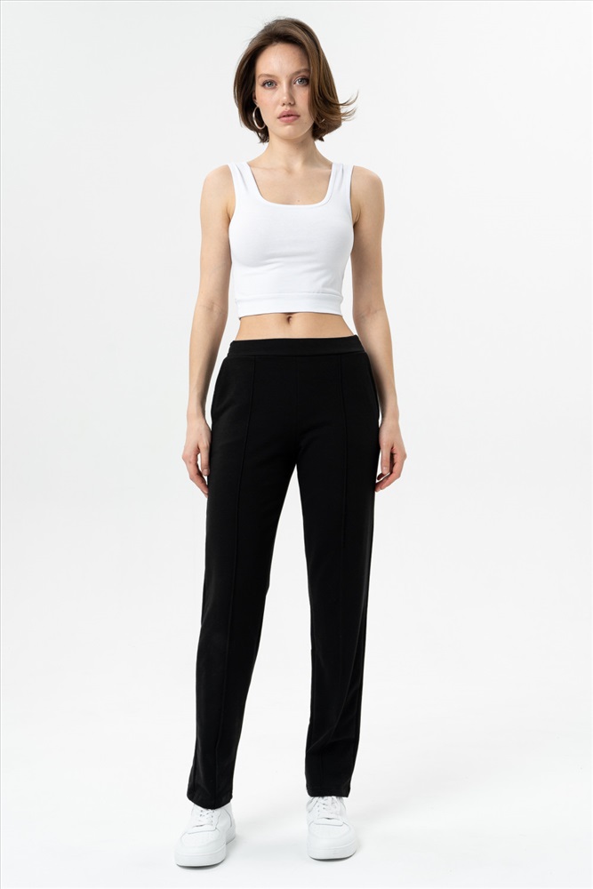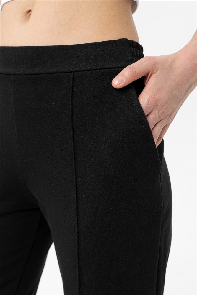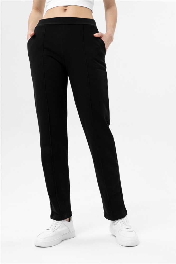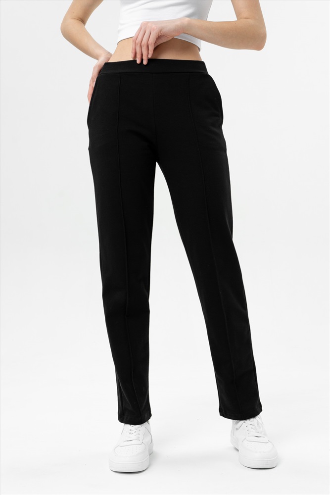 Брюки выполнены из хлопкового футера. Брюки с средней посадкой и карманами в боковых швах. Отстрочка по центру на передней половинке брюк придают особый шик и визуально стройнят фигуру. Выглядит это очень эффектно и стильно. Модель универсальна и сочетается, как с толстовками, свитшотами, так и с футболками.