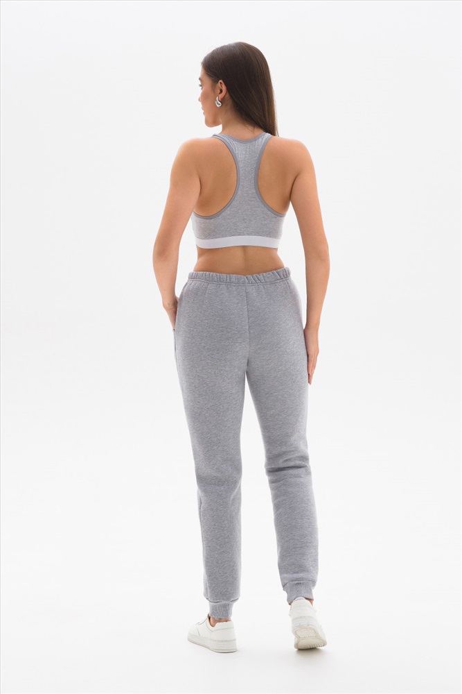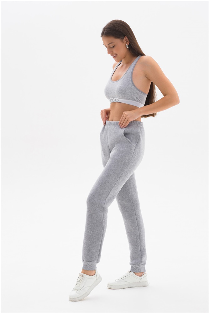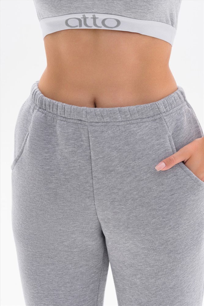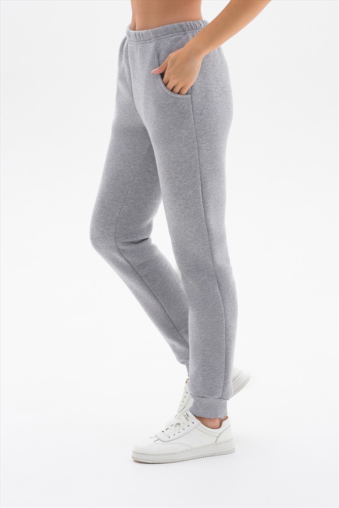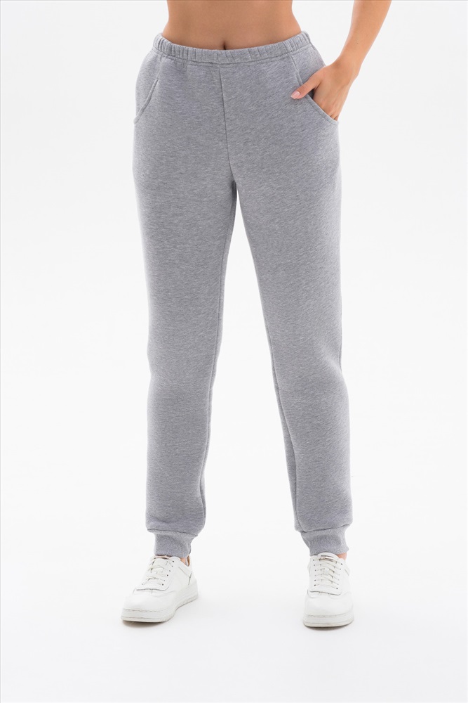 Утепленные брюки выполнены из хлопкового футера с начёсом. Брюки со средней посадкой, с карманами и манжетами по низу. Модель универсальна и сочетается, как с толстовками, свитшотами, так и с футболками.