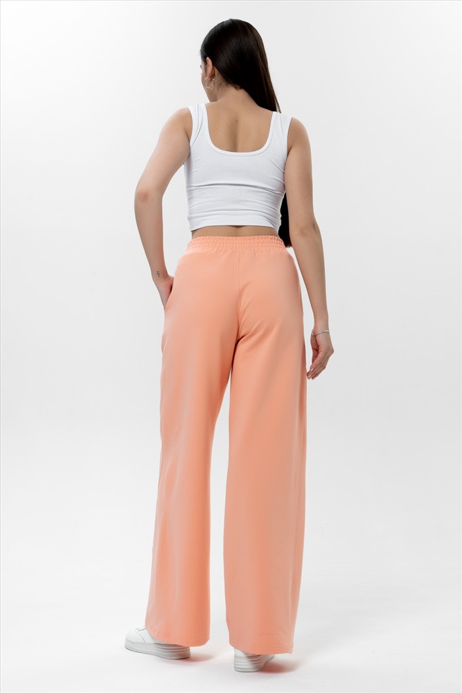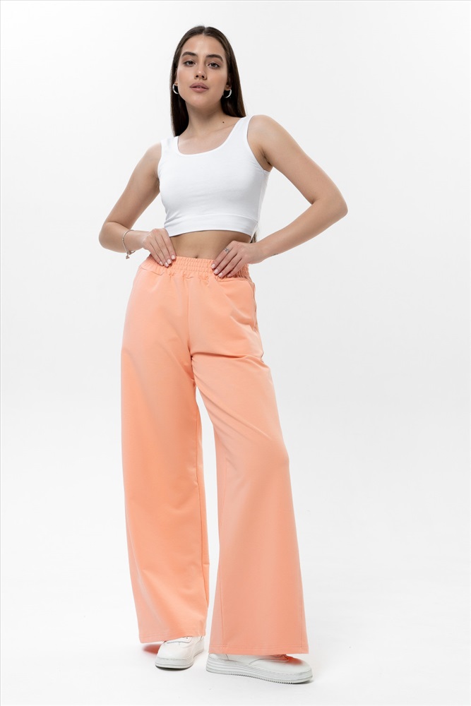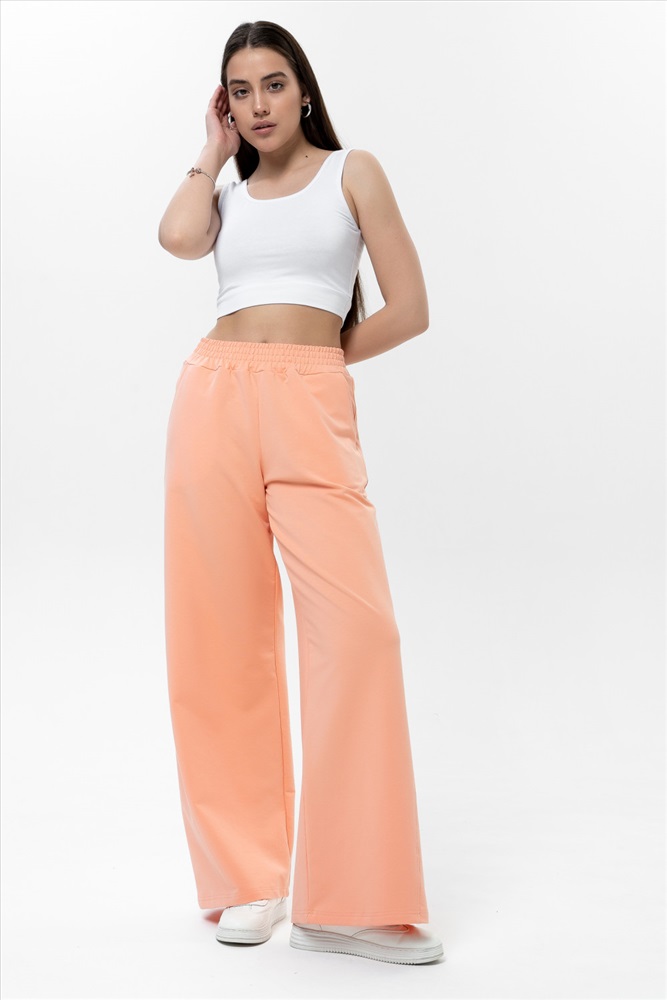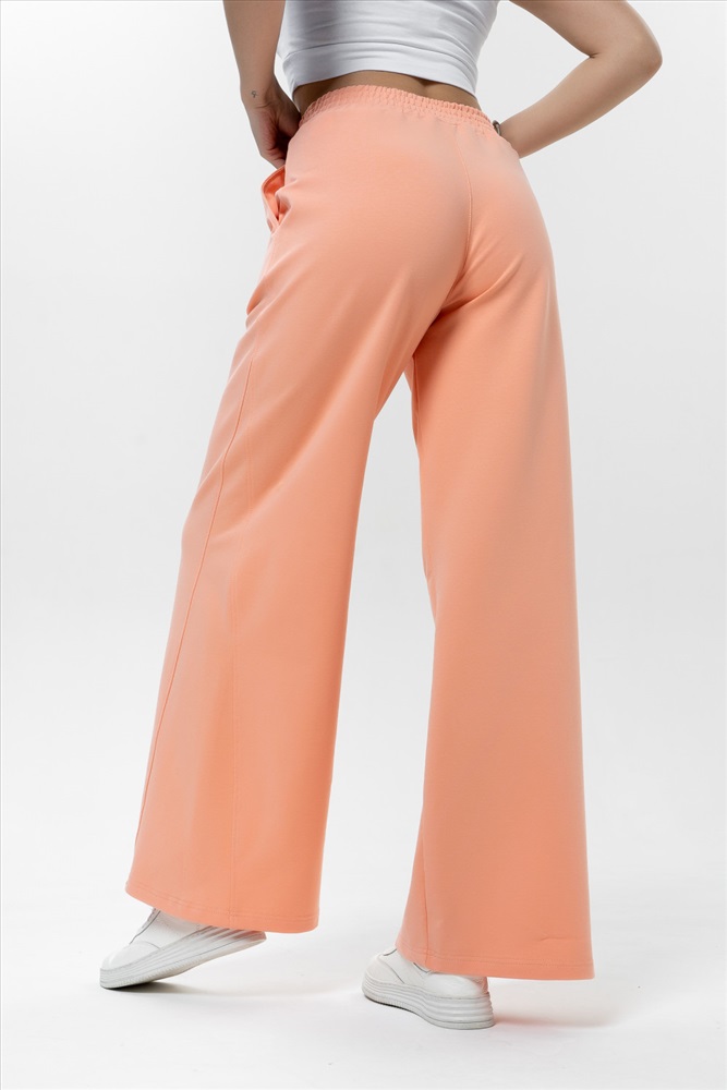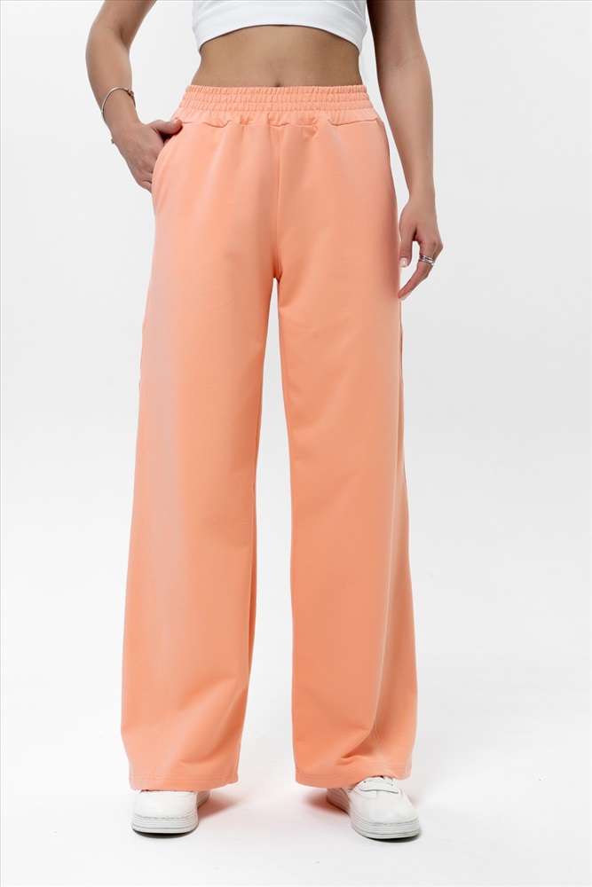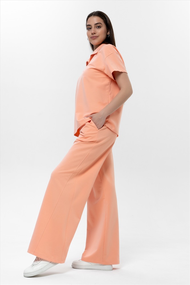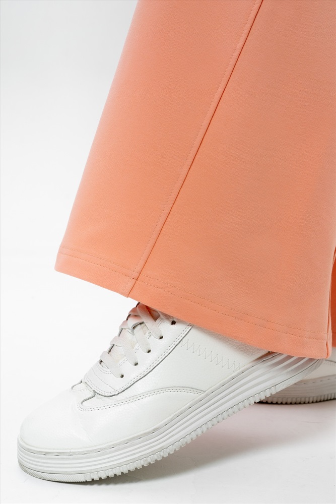 Стильные и модные брюки палаццо отличаются легкостью и комфортным прилеганием к телу. Мягкая резинка на талии обеспечивает идеальную посадку. Брюки прямые широкие с удобными карманами в боковом шве и декоративными подрезами сбоку выполнены из мягкого хлопкового футера, что придает ему стильный образ, а заодно выгодно подчеркивает фигуру. В комплекте с нашими джемперами из этой серии, футболкой или топом получается прекрасный костюм, который подходит как для дома, так и для прогулок и путешествий.