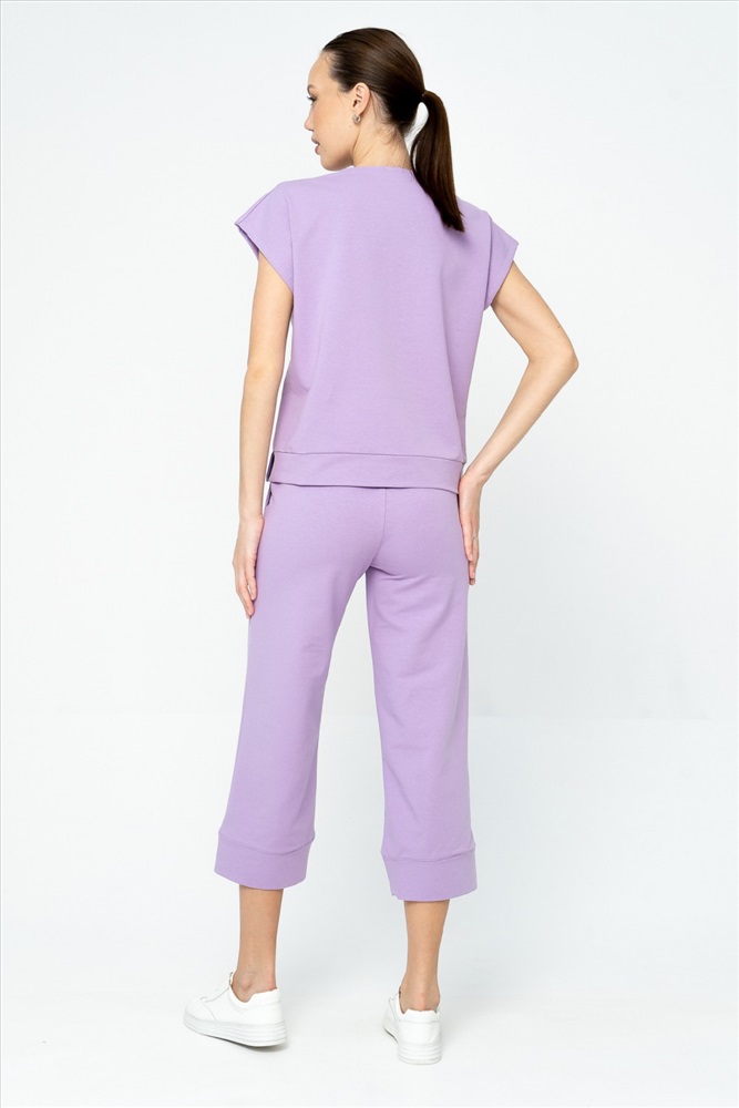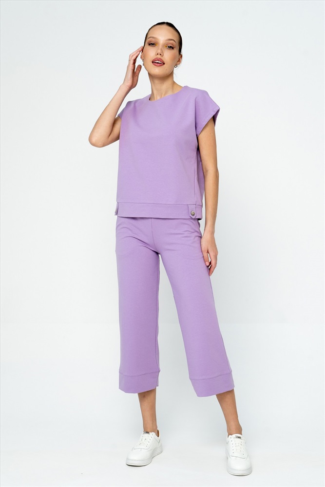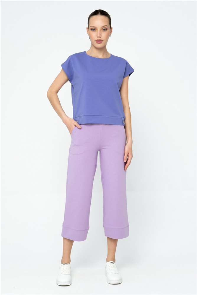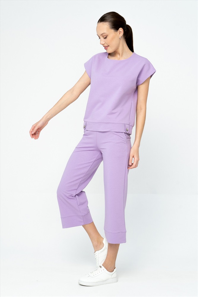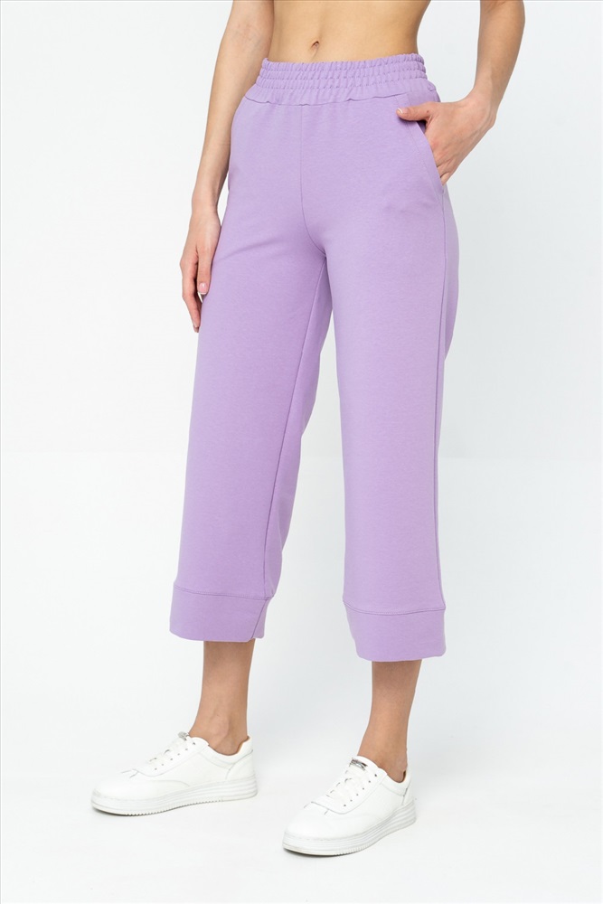 Производитель: POL`MOTIVE Код товара: 22-381L3-29 Состав: х/б - 65 %; л. - 10 %; ПА - 25 % Вид полотна: Футер 2-х нитка цвет: сиреневый Коллекция: JOLLY Стильные брюки-кюлоты длиной до середины колен отличаются легкостью и комфортным прилеганием к телу. Мягкая резинка на талии обеспечивает идеальную посадку. Брюки, прямые с карманами в боковом шве выполнены из мягкого хлопкового футера, что придает ему стильный образ, а заодно выгодно подчеркивает фигуру. Шов на передней половинке спереди и широкая манжета по низу брюк придают особый шик. Выглядит это очень эффектно и стильно. В комплекте с нашими джемперами из этой серии, футболкой или топом получается прекрасный костюм, который подходит как для дома, так и для прогулок и путешествий. Рост модели на фотографии 176 см. размер одежды 44 Длина брюк по боковому шву 42 размер 84см. 44 размер 84см. 46 размер 84,5см. 48 размер 84,5см. 50 размер 85см. 52 размер 85см. 54 размер 85см.