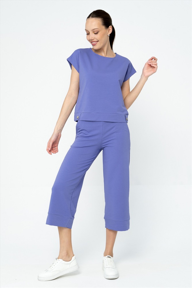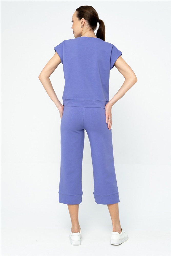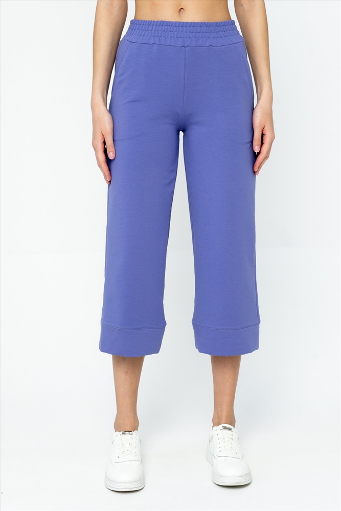 Стильные брюки-кюлоты длиной до середины колен отличаются легкостью и комфортным прилеганием к телу. Мягкая резинка на талии обеспечивает идеальную посадку. Брюки, прямые с карманами в боковом шве выполнены из мягкого хлопкового футера, что придает ему стильный образ, а заодно выгодно подчеркивает фигуру. Шов на передней половинке спереди и широкая манжета по низу брюк придают особый шик. Выглядит это очень эффектно и стильно. В комплекте с нашими джемперами из этой серии, футболкой или топом получается прекрасный костюм, который подходит как для дома, так и для прогулок и путешествий.