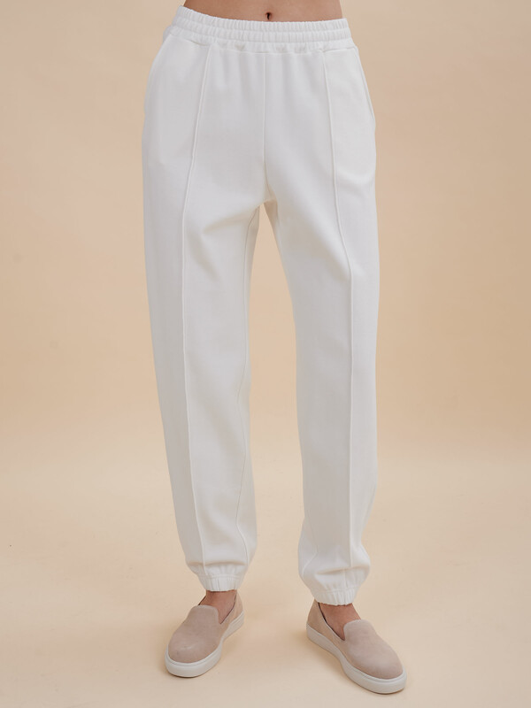 Женские брюки джоггеры со стрелками по переду. Актуальная модель, сочетающая в себе спортивный стиль и элегантность. Брюки свободного кроя подарят вам ощущение комфорта и уюта. Высокая посадка визуально удлиняет ноги. По бокам брюк удобные наклонные карманы. По низу манжеты — один из модных трендов. В поясе мягкая и широкая резинка — не давит и не растягивается. Брюки однотонные, без принта. За ними просто ухаживать. В составе ткани преобладает высококачественный хлопок — штаны мягкие и воздухопроницаемые. Эластан помогает изделию сохранять первозданную форму в течение долгого времени. Женские трикотажные брюки представлены в следующих актуальных цветах: чёрном, голубом, синем, зелёном, белом. Размерная линейка: XS (42); S (44); M (46); L (48); XL (50). Брюки подходят женщинам, девушкам, девочкам-подросткам. Их можно носить на работу, учёбу, они идеальны для спорта, отдыха, а также как домашние брюки. Подходят для лета и демисезона (осень и весна). Женские брюки на резинке легко комбинировать с разнообразными джемперами, свитерами, футболками. Женские летние брюки — это отличный подарок сестре, маме или подруге на любой праздник. Выбирайте нужный размер по таблице размеров на фото. Цвет товара на экране вашего устройства может отличаться от цвета изделия вживую.