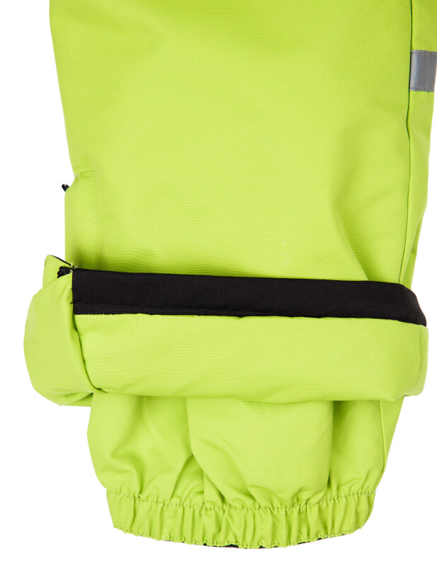 Мембранный материал делает этот яркий и модный комбинезон непромокаемым: мембрана не пропускает влагу снаружи, но выводит её изнутри, что крайне важно во время подвижных игр и занятий спортом.