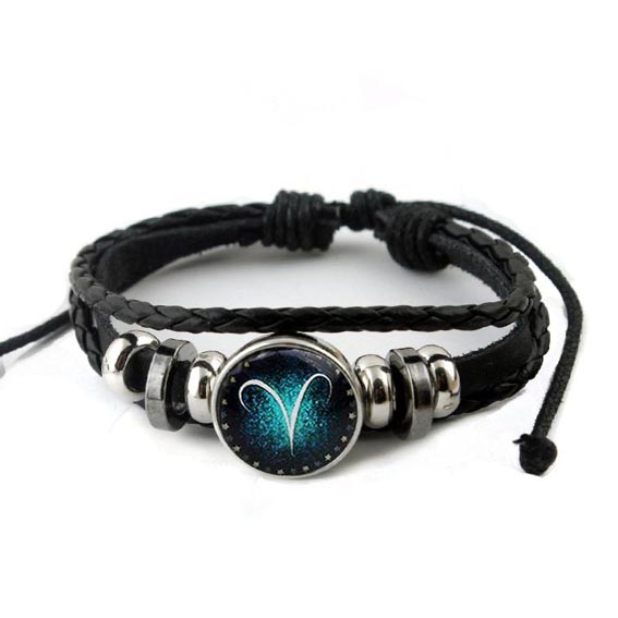 BS071-03 Браслет Овен, кожа, металл оптом. Стильный кожаный браслет из серии "Знаки Зодиака". Регулируемый (подходит на любую руку).