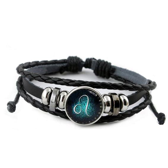BS071-10 Браслет Лев, кожа, металл оптом. Стильный кожаный браслет из серии "Знаки Зодиака". Регулируемый (подходит на любую руку).
