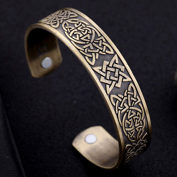 BS136-01-B Браслет с мощными неодимовыми магнитами Звезда Руси, цвет бронзовый оптом.