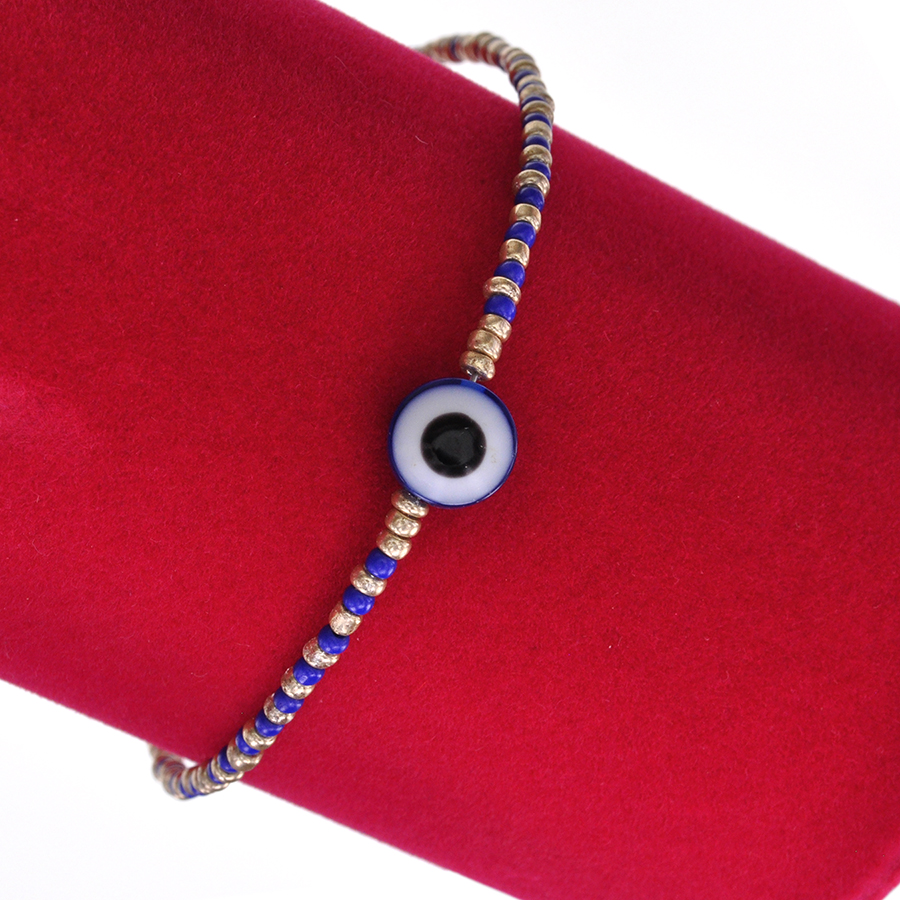 Материал: бижутерный сплав. Покрытие: под золото. Вставки: бисер и стекло. Тип замка: лобстер. Диаметр коннектора: 7,5мм. Длина браслета: 22,5см. Браслет регулируется по обхвату запястья.