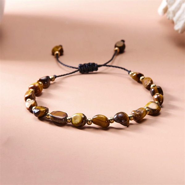 Плетёный браслет с вставками из натурального тигрового глаза. Ширина браслета: ~5мм. Браслет регулируется по обхвату запястья.