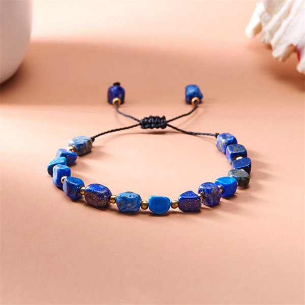Плетёный браслет с вставками из натурального лазурита. Ширина браслета: ~5мм. Браслет регулируется по обхвату запястья.