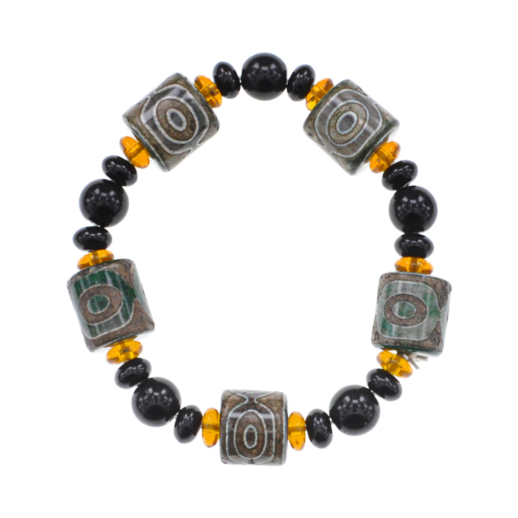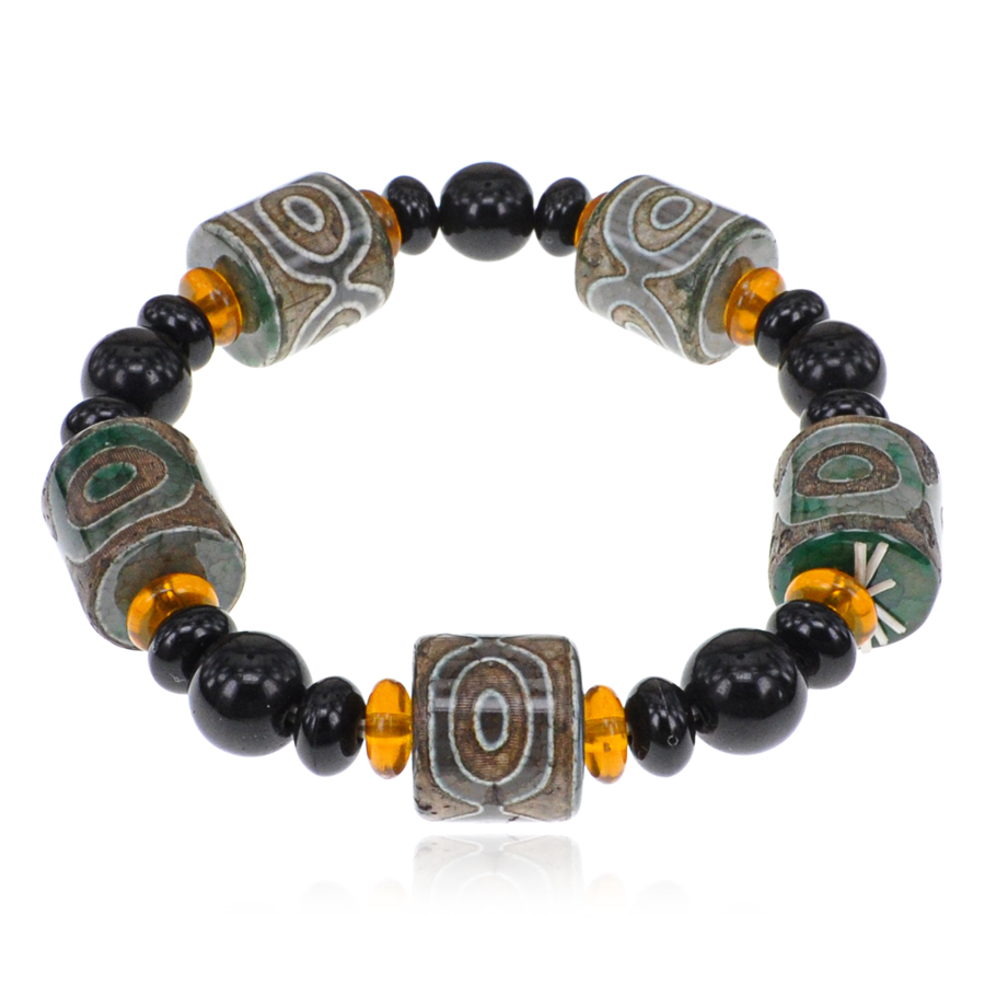 BSDZ-040 Браслет с бусинами Дзи 3 глаза, натуральный агат