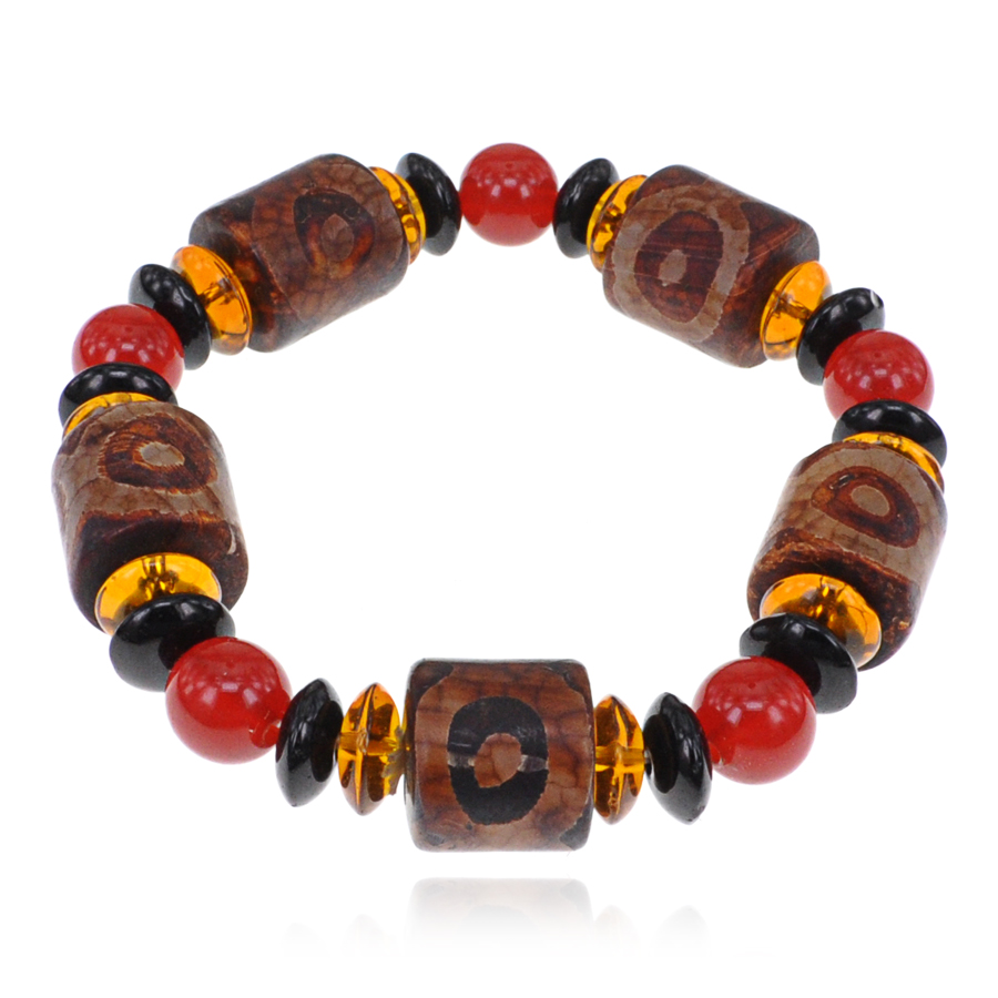 Стрейч-браслет с бусинами Дзи 3 глаза из натурального агата.