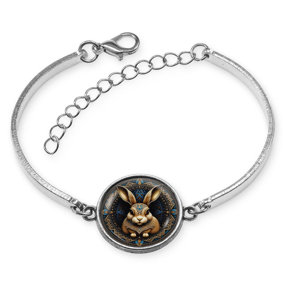 Браслет из бижутерного сплава с регулируемой по длине застёжкой. Изображение диаметром 20 мм прикрыто выпуклой стеклянной линзой. Товар упакован в прозрачный пакет. Без описания.