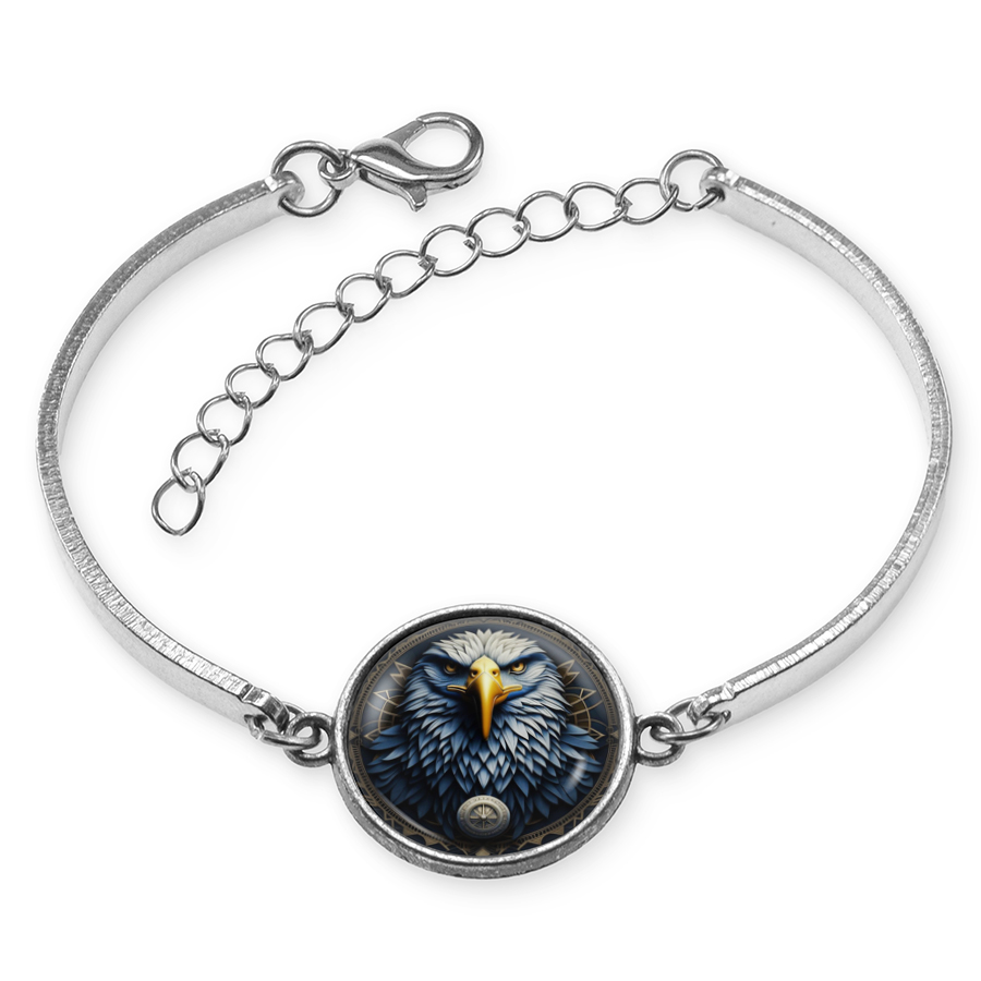 Браслет из бижутерного сплава с регулируемой по длине застёжкой. Изображение диаметром 20 мм прикрыто выпуклой стеклянной линзой. Товар упакован в прозрачный пакет. Без описания.