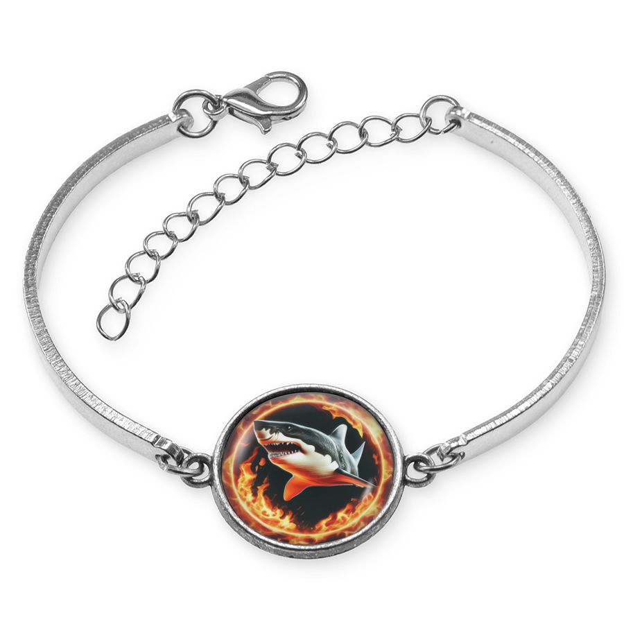 Браслет из бижутерного сплава с регулируемой по длине застёжкой. Изображение диаметром 20 мм прикрыто выпуклой стеклянной линзой. Товар упакован в прозрачный пакет. Без описания.