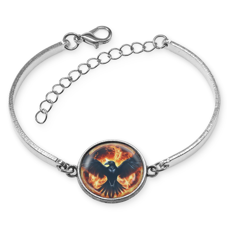 Браслет из бижутерного сплава с регулируемой по длине застёжкой. Изображение диаметром 20 мм прикрыто выпуклой стеклянной линзой. Товар упакован в прозрачный пакет. Без описания.