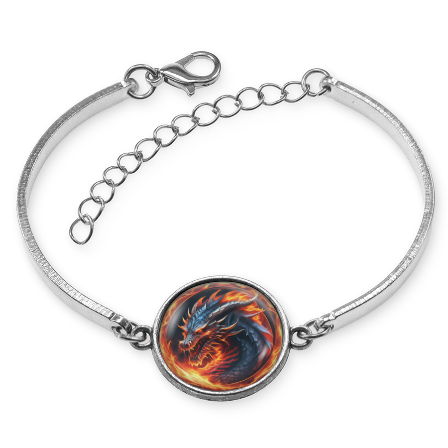 Браслет из бижутерного сплава с регулируемой по длине застёжкой. Изображение диаметром 20 мм прикрыто выпуклой стеклянной линзой. Товар упакован в прозрачный пакет. Без описания.